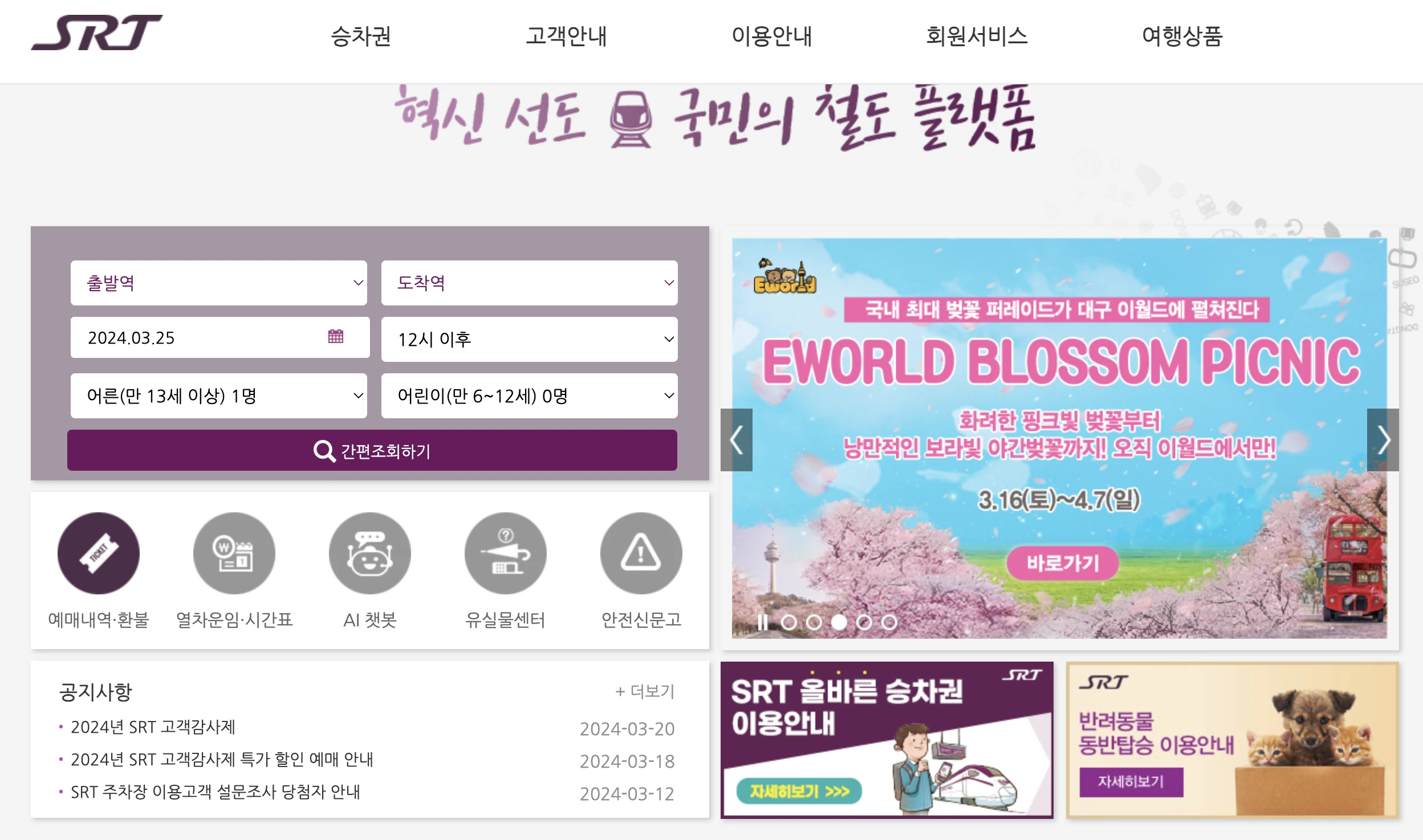 KTX, SRT, GTX 차이 1분 정리(노선, 가격, 할인 등) KTX, SRT, GTX 비교 정리 ‘KTX, SRT, GTX 철도 이름 왜 이렇게 많아요?’ 다 똑같은 철도가 아니에요. KTX, SRT, GTX 각각 이름이 다르듯 속도와 노선, 좌석이 다 달라요. 이용하고 있었지만 잘 몰랐던 철도 이름. 오늘은 어렴풋이 알고만 있었던 3가지 철도의 차이점을 알기 쉽게 설명해 드릴게요. KTX(Korea Train Express) 대한민국 국민이라면 모를 수가 없는 KTX. 1992년 착공해 2004년부터 운행이 시작되었어요. 서울을 중심으로 대전, 대구, 부산, 광주 등 주요 거점 도시를 연결하는 중요한 역할을 하죠. KTX는 공기업인 코레일에서 운영하고 있으며, 운행이 개시되면서 서울에서 부산까지 약 2시간 30분 내 이동 가능해졌어요. 또 서울에서 강릉까지 1시간 30분이면 도착하는 이점에 당일치기 여행객들로 KTX 예매가 하늘의 별 따기라고도 하죠. 즉, '전국이 반나절 생활권'이 실현되게 했답니다. 여기서 나아가 현재는 서울에서 부산까지 소요시간을 2시간 내로 단축하는 사업을 진행하고 있으며 자율주행도 도입할 예정이라고 해요. 코레일 홈페이지에 접속하면 노선별 운임료 확인은 물론, KTX 예매까지 가능해요. @레츠코레일 SRT (Super Rapid Train) KTX의 대항마로 2016년에 개통된 SRT. KTX가 공기업에서 운영하고 있다면, SRT는 주식회사 SR에서 민간투자사업으로 운영하는 고속 열차예요. 가장 큰 차이점은 출발지라고 할 수 있는데요. KTX가 서울역, 용산, 광명에서 출발한다면, SRT 노선은 이곳들 대신 수서역을 기점으로 삼았죠. 그래서 서울 송파구나, 서초구, 강남구 인근 지역 주민들의 철도 이용 편의성을 높아졌어요. 또, 저속 운행해야 하는 도심 구간을 건너뛰고 수서역에서 출발하기 때문에 KTX보다 소요 시간을 10분 정도 단축할 수 있었어요. 교통 운임은 KTX보다 약 10% 저렴하고요. 조금 헷갈리시죠? 아래 표에서 두 철도를 비교해 보시면 이해가 더 빠르실 거예요. 구분 KTX SRT 최고 속도 305km/h 330km/h 소요시간 서울-부산: 약 2시간 40분 서울-부산: 약 2시간 30분 운행 노선 <KTX 노선>경부선: 행신-서울-부산호남선: 행신-용산-목포경전선: 행신-서울-진주전라선: 행신-용산-여수강릉선: 행신-서울-동해중앙선: 서울-안동중부내륙선: 판교-충주 <SRT 노선>경부선: 수서-부산호남선: 수서-목포경전선: 수서-진주전라선: 수서-여수동해선: 수서-포항 좌석 수 및 좌석 편의 좌석수 935석, 입석 가능무료 Wi-Fi, 멀티탭, 특정 좌석 콘센트 좌석수 410석, 입석 불가무료 Wi-Fi, 멀티탭, 전 좌석 콘센트 등(*특실 목베개 제공) 요금 서울-부산 59,800원(일반)/ 83,700원(특실)SRT보다 다소 높음 서울-부산 51,800원(일반)/ 75,600원(특실)KTX보다 약 10% 저렴 @SRT 홈페이지 GTX (Great Train Express) 개발 호재로 떠오른 GTX. 도대체 GTX가 뭐길래? GTX란 수도권 외곽에서 서울 도심 주요 거점을 연결하는 수도권 광역 급행철도예요. KTX와 SRT가 전국의 주요 거점을 연결해 전국을 반나절 생활권으로 만들었다면, GTX는 수도권 출퇴근 30분 시대를 현실화하려고 하죠. 그래서 GTX 수혜가 예상되는 지역에서는 집값도 함께 들썩이는 거예요. 현재 GTX A·B·C 등 3개 노선 건설이 추진되고 있으며, 그중 GTX-A(수서~동탄) 노선은 이번 달 30일부터 개통돼요. 더불어 GTX-A 노선 중 파주 운정~서울역 구간은 올해 말 개통될 예정이랍니다. 1) GTX 요금 수서~동탄 기본요금은 3,200원으로 확정됐고, 이동 구간을 10km 초과하면 5km마다 거리 요금 250원이 추가되는 구조예요. 그래서 서울~동탄 구간 요금은 4,450원, 수서~성남 구간은 3,450원, 성남~동탄 구간은 3,950원인데, 올 5월부터 시행되는 K 패스(교통비 할인카드)를 활용하면 할인된 금액으로 이용 가능해요. 또, 수도권 버스나 전철과도 환승 할인이 적용됩니다. * K-패스에 따른 환급 적용 시 수서∼동탄 구간: 일반인은 3560원(20% 환급), 청년(만 19∼34세)은 3110원(30% 환급), 저소득층은 2070원(53.3% 환급)에 이용 가능 🔗 기후동행카드 vs K패스 vs 알뜰교통카드 비교 정리 참고로, 동탄역에서 수서역까지는 SRT로도 이동 가능한데요. 이때 요금은 7,400원이라 GTX가 2,950원 더 저렴하다는 점! 속도 및 소요 시간은 GTX는 기존의 전철보다 3배 이상 빠른데요. 기존 수도권 지하철은 지하 20m 내외에서 30~40km로 운행되지만, GTX는 지하 40~50m 내외에서 시속 100km 이상(최고 시속 200km)으로 운행돼요. 그래서 현재 자차로 경기도에서 서울 도심까지 2~3시간 걸렸던 교통 시간이 20~30분 내로 확 줄어들죠. 수서~동탄 구간의 경우 자차로 45분, 버스로 75분이 소요됐지만, GTX를 이용하면 정차 시간을 포함해 약 20분이 걸려요. 2) GTX 노선 GTX는 A(경기 파주 운정∼평택), B(인천∼춘천), C 노선(경기 동두천∼아산) 이렇게 3개 노선이 건설 중이며, D(장기역~팔당역), E(인천공항~덕소역), F(의정부~수원~의정부) 구간은 추진 중이에요. GTX 노선 개통으로 출퇴근 시간이 절반으로 줄어드는 건 물론, 지방 인구 유입도 조금은 기대해 볼 만하겠죠? 참고로 국토교통부 홈페이지를 참고하시면 GTX와 관련된 다양한 정보들을 찾아보실 수 있어요. @국토교통부 공식 누리집 어때요? 비슷비슷한 이름 덕분에 헷갈렸던 철도 종류. 이제 좀 정리가 되셨나요? 이렇게 비교해 보면 같