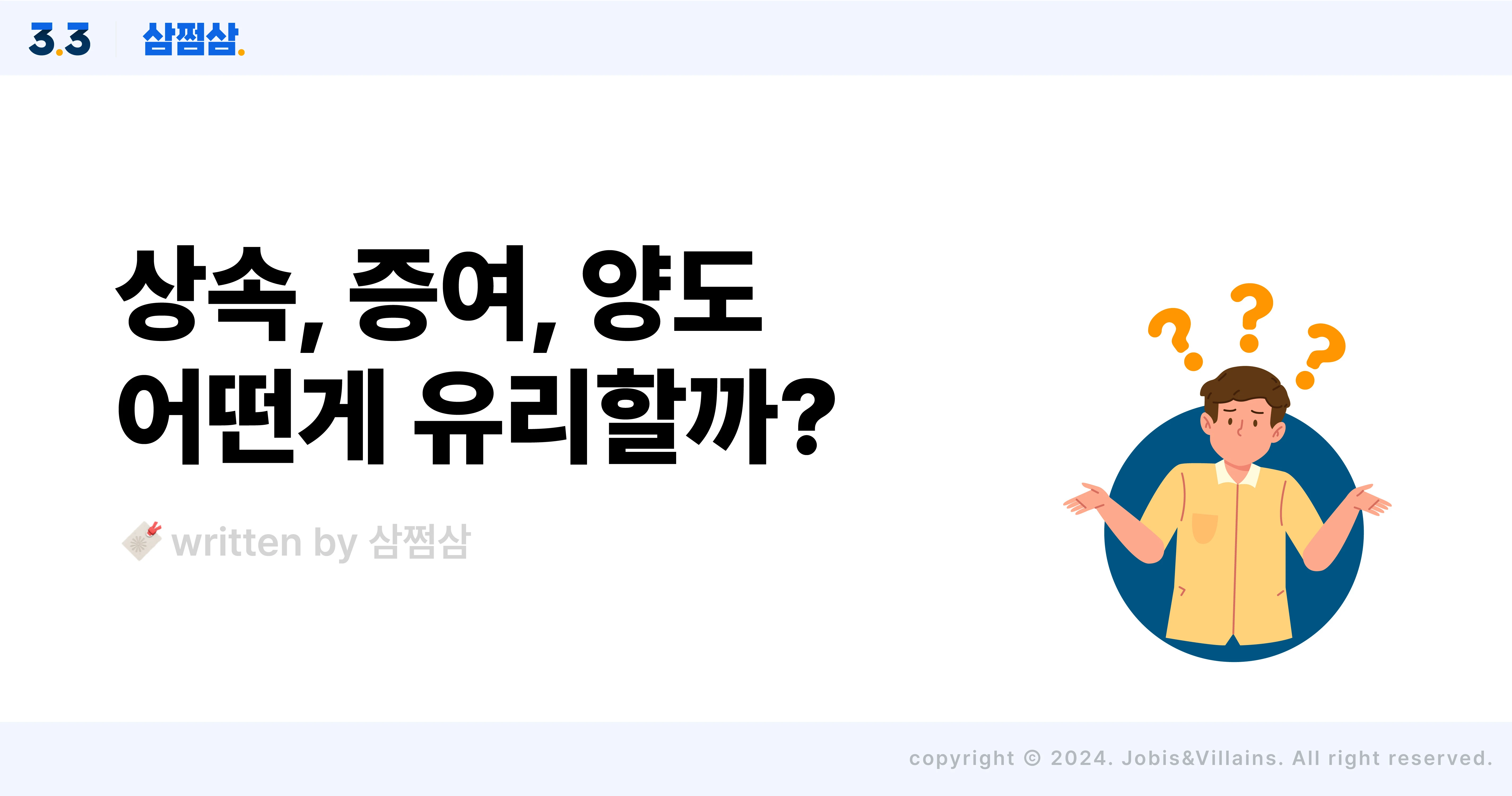 양도세 증여세 상속세 차이, 물려받은 재산에 붙는 세금은? 부모가 자녀에게 재산을 물려줄 때 단순히 명의만 바꾸는 거라고 생각해선 곤란해요. 우리 세법에서는 공짜로 물려주는 재산에 대해서도 엄연히 세금을 매기거든요. 그래서 어떻게 물려주냐에 따라서도 예기치 않은 세금 폭탄을 맞을 수도 있답니다. 그러니 재산을 물려줄 생각이 있다면 전략을 잘 세워야겠죠? 지금부터 어떤 상속 방식이 유리할지 한번 고민해 보도록 할게요. 일반적으로는 ‘상속’이 유리 상속세는 부모가 사망해 재산을 물려받을 때 내는 세금이에요. 단순히 평면적으로만 비교해 보자면 상속이 유리해요. 왜냐하면, 상속의 공제 한도가 내 손으로 물려주는 증여보다 크기 때문이죠. 증여세 상속세 차이의 가장 큰 부분은 공제 금액이거든요. 증여의 경우 성년 자녀는 5천만 원(미성년자가 직계존속으로 증여받은 경우 2천만 원)까지 공제받아 증여세를 내지 않지만, 상속은 5억 원까지 일괄 공제받을 수 있어요. 이는 사망을 전제로 재산의 권리가 이전되기 때문에 증여에 비해 공제 한도가 큰 거라 이해할 수 있죠. [상속 공제 활용법] ① 가장 기본적으로 기초공제 2억 원 ② 성년인 자녀 1명당 5천만 원 공제 추가 적용 ③ 기초공제와 자녀 공제를 합해 5억 원이 되지 않는다면 일괄공제 5억 원 선택 적용 ④ 사망한 부친 or 모친의 배우자가 살아계시면 배우자 상속 공제 추가 적용 - 배우자가 실제 상속받은 금액이 없거나 5억 원 미만인 경우 : 5억 원 공제 - 배우자가 실제 상속받은 금액이 5억 원 이상인 경우 : 실제 상속받은 금액(공제 한도액 초과 시 공제 한도액) 공제 (최소 한도 30억 원) 즉, 일괄공제 5억 원에 배우자 상속 공제를 추가 적용받으면 최소 10억까지 상속세가 발생하지 않는 셈이랍니다. 🚨 다만, 이때는 2차 상속이 발생했을 때까지를 고려해야 해요! 예컨대 부친이 10억 원 재산이 있었다고 가정해 볼게요. 만약 10억 원을 어머니가 다 상속받으면 일괄공제와 배우자 공제를 합해 상속세를 한 푼도 내지 않을 수 있어요. 그런데, 어머니마저 돌아가시게 되면 일괄공제 5억만 받을 수 있어서 남은 5억에 대한 상속세를 내야 해요. <상속세 세율> 과세표준 세율 누진공제 1억 원 이하 10% - 1억 원 초과 ~ 5억 원 이하 20% 1천만 원 5억 원 초과 ~ 10억 원 이하 30% 6천만 원 10억 원 초과 ~ 30억 원 이하 40% 1억 6천만 원 30억 원 초과 50% 4억 6천만 원 따라서 이 부분을 고려한다면, 애초에 어머니와 자녀가 5억 원씩 상속받거나 자녀가 10억 원을 한 번에 상속받는 게 좋아요. 배우자 상속 공제는 배우자가 살아있기만 하면 적용받을 수 있는 개념이기 때문이죠. ⑤ 마지막으로 하나 더! 한 주택에서 피상속인과 상속인이 10년 이상 계속 동거했다면 주택 가격의 6억 원까지 동거주택 상속공제 적용 가능 하다는 점도 알아두세요. Q. 상속세가 부과되지 않는 범위 내의 재산을 물려받았다면? A. 이런 경우 상속세 신고를 하지 않아도 되는데요. 이런 경우에는 나중에 양도소득세 부담이 커질 수 있으니 주의해야 해요. 예를 들어 시가 8억 원, 기준시가 4억 원인 아파트를 물려받은 후, 8억 원에 아파트를 매매했다고 가정해 볼게요. 상속세 신고를 하지 않으면 취득가격을 기준시가 4억이라고 보기 때문에 8억-4억=4억에 대한 양도소득세를 내야 해요. 그런데 상속세 신고를 하면 취득가격을 8억으로 인정받아 시세차익이 0원이라 양소소득세, 안 낼 수 있답니다. 증여가 유리한 경우도 있어요 한편, 증여세를 적용받는 게 더 유리한 경우도 있어요. 재산가액이 높을 때가 그렇죠. 왜냐하면, 상속세는 전체 재산에 과세하지만, 증여세는 받은 재산에 과세하거든요. 이게 무슨 말이냐 하면, 부친이 돌아가신 후 50억의 재산을 남겼다고 가정해 볼게요. 그럼 상속세는 50억 전체에 대해 과세한 후 남은 금액을 유족이 나누어 받는 식이에요. 반면, 증여세는 받은 사람별로 세율을 계산하게 되어 있죠. 상속·증여세 세율은 과세표준에 따라 세율이 높아지는 누진세율 구조라 금액이 커질수록 세 부담도 늘어나요. 그래서 50억을 상속받는 것보다, 유족이 나누어 받는 게 낮은 세율을 적용받아 절세에 더 유리해요. <증여세 세율(=상속세와 동일)> 과세표준 세율 누진공제 1억 원 이하 10% - 1억 원 초과 ~ 5억 원 이하 20% 1천만 원 5억 원 초과 ~ 10억 원 이하 30% 6천만 원 10억 원 초과 ~ 30억 원 이하 40% 1억 6천만 원 30억 원 초과 50% 4억 6천만 원 그리고 증여·상속세를 계산할 때 일반적으로 10년 치를 합산한다는 점도 주의해 주셔야 해요. 부친이 재산을 증여해 줬는데, 만약 5년 뒤에 돌아가신다면 이미 증여한 재산도 상속 재산에 포함돼 상속세 대상이거든요. 따라서 재산이 많은 경우에는 장기간에 걸쳐 계획을 세운 뒤 증여해 주시는 게 유리하다고 할 수 있어요. 부동산을 자녀에게 싸게 양도하면 어떨까? 부동산을 팔 때 내는 세금이 바로 양도소득세인데요. 자녀에게 부동산을 물려줄 때 상속·증여세를 절세하기 위해 '시세보다 싸게 파는 형식으로 주면 되는 거 아니야?'라고 생각하시는 분들도 있어요. 하지만 이런 경우는 원칙적으로 ‘양도’로 보지 않아요. 현실적으로 