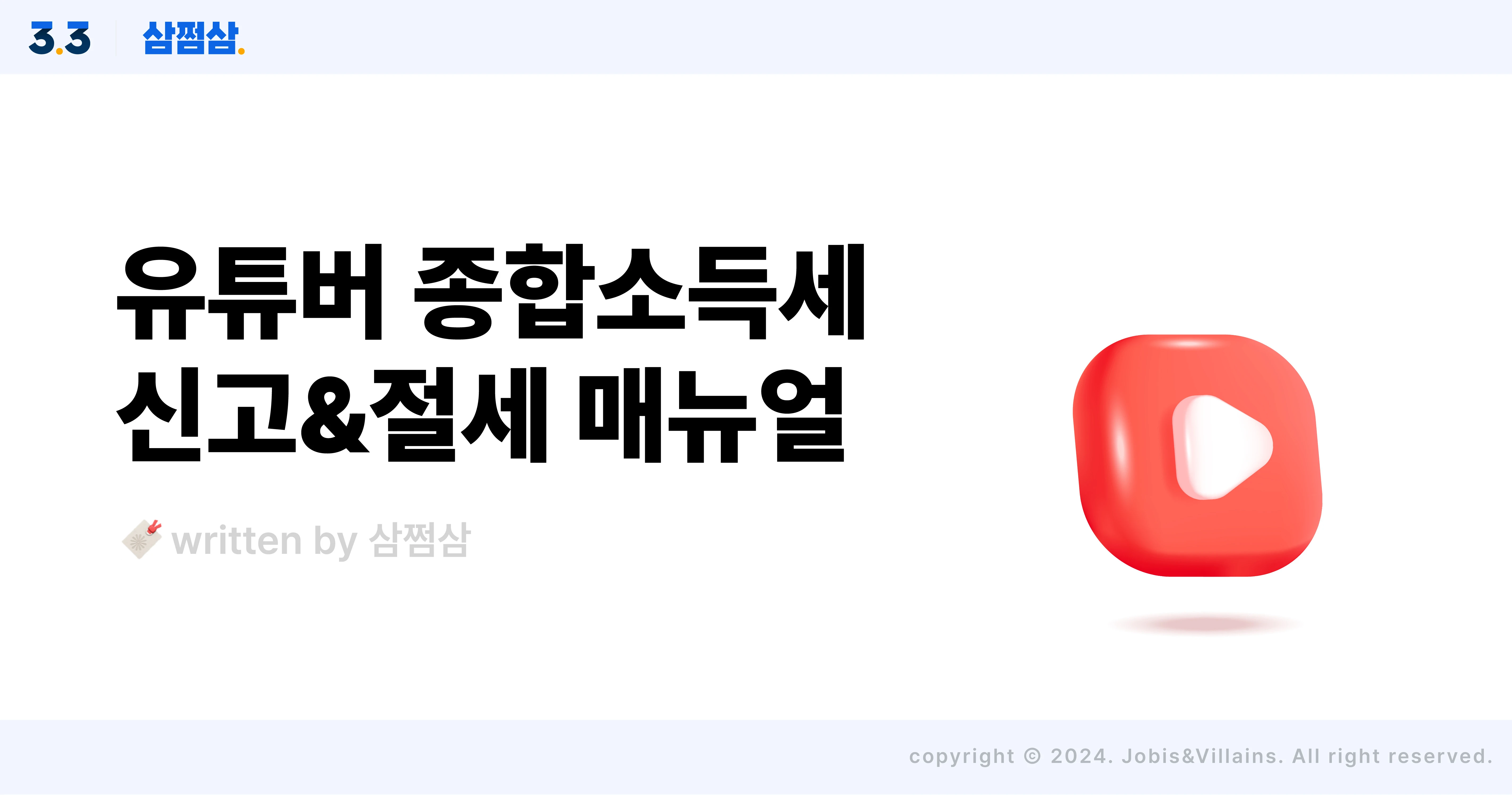 유튜버, 크리에이터 종합소득세 세금 신고 매뉴얼 유튜버 세금 종류 최근 1~2년 사이 초등학생들의 장래희망 1순위가 유튜버라는 소식을 접했는데요. 이러한 인기를 방증하듯, 직장인분들 중에서도 부캐로 유튜버를 하고 계신 분들이 있죠. 인기 유튜버는 연예인 못지않은 인기와 수익을 올리기도 하는데요. 덩달아 수익 구조라던가 유튜버 세금에 대해 관심을 가지시는 분들이 많아요. 5월 종합소득세 신고 기간을 맞아 유튜버 세금에 대한 전반적인 내용뿐만 아니라 유튜버 종합소득세 절세 방법에 대해서도 알아보도록 할게요. 유튜버는 사업자인가요? 그렇다면 사업자등록도 해야 하나요? 어쩌다 한 번 수익이 발생했거나, 공익적 차원에서 무료로 콘텐츠를 창작하는 유튜버라면 사업자 등록할 필요 없어요. 단, 영리를 목적으로 반복적인 소득이 발생하고 있다면 당연히 사업자등록을 해야 하죠. 이건 유튜브뿐만 아니라 SOOP(구 아프리카 TV), 트위치, 틱톡 등에 영상을 공유하는 유튜버, 크리에이터, BJ, 틱토커, 스트리머 등에게 모두 해당하는 사항이에요. 만약 영리 목적으로 반복적인 소득이 발생한다면 사업자등록을 해야 한다고 말씀드렸는데요. 이분들은 ✅미디어 콘텐츠 창작업 (업종 코드 921505, 과세사업자)이나 ✅1인 미디어 콘텐츠 창작자 (업종 코드 940306, 면세사업자)로 등록할 수 있어요. <여기서 잠깐! 유튜버 사업자등록 자주 하는 질문 FAQ> Q1. 1인 미디어 콘텐츠 창작자 VS 미디어 콘텐츠 창작자 선택 기준은? 근로자를 고용하지 않고 물적 시설이 없는 경우에는 면세사업자인 1인 미디어 콘텐츠 창작자로 등록할 수 있어요. 반면, 외부 인력(영상 편집자, 시나리오 작성자 등을 고용) 또는 물적 시설(별도의 방송용 스튜디오 등)을 갖췄다면 과세사업자인 미디어 콘텐츠 창작업으로 등록해야 해요. 인력 고용, 물적 시설 X: 1인 미디어 콘텐츠 창작자(면세사업자) 인력 고용, 물적 시설 O: 미디어 콘텐츠 창작업(과세사업자) Q2. 미디어 콘텐츠 창작업으로 사업자 등록을 한다면, 일반과세자 VS 간이과세자 선택은? 1인 미디어 콘텐츠 창작자는 부가가치세가 면제되는 면세사업자이지만, 미디어 콘텐츠 창작자는 과세사업자라 [일반과세자와 간이과세자]를 선택해 사업자 등록해야 해요. 처음 등록할 땐 세금계산서 발급 의무나, 부가가치세 계산식 등의 차이를 고려해 어떤 과세유형이 적합한지를 판단하는 게 좋아요. 아래 일반과세자와 간이과세자의 차이를 표로 정리해 뒀으니 참고해 주세요. 구분 일반과세자 간이과세자 적용기준 (직전 과세기간 매출액) 연 매출 8천만 원 이상간이과세 배제 업종 연 매출 8천만 원 미만간이과세 적용 업종 매출세액 공급가액×10% 공급대가×업종별 부가가치율×10% 세금계산서 발급 발급 의무 직전연도 공급대가 합계액이4,800만 원 이상은 발급 가능 매입세액공제 전액 공제 공급대가×0.5% 환급 여부 환급 가능 환급 불가 유튜버가 내야 하는 세금은? 유튜버 종합소득세&부가가치세 1) 부가가치세 국내 사업자는 보통 전체 매출의 10%를 부가세로 내는데요. 유튜버는 사정이 조금 달라요. 우선, 유튜브 영상 수익에 대한 부가가치세는 영세율이 적용되거든요. 유튜버는 국외 사업자인 구글로부터 광고 대행 명목으로 돈을 받는 형태이기 때문인데요. 이는 ‘용역의 국외 공급’에 해당해 부가가치세가 면제되는 거죠. 하지만 면제라고 해서 세금 신고 의무까지 면제된 건 아니에요. 외국환은행이 발급하는 외화입금증명서 등 영세율 적용 첨부 서류를 제출해 신고해야 부가가치세 면제를 받을 수 있어요. 깜빡 잊고 부가세 신고하지 않았다면? 가산세 20%를 두드려 맞게 된답니다. 한편, 슈퍼챗으로 받은 외환이나 개별 후원계좌 등으로 받은 후원금, 광고주와 직접 광고 계약을 맺고 받은 광고료 등도 부가가치세 신고를 해줘야 하는데요. 일반과세자는 매출의 10%의 세율이 적용되고, 8천만 원 미만의 간이과세자는 1.5~4%의 세율이 적용돼요. <유튜버 부가가치세 자주 하는 질문 FAQ> Q. 1인 미디어 콘텐츠 창작자는 부가가치세가 면제된다던데요? 네 맞아요. 1인 미디어 콘텐츠 창작자는 면세사업사로 부가세 면제를 적용받아요. 단, 신고는 신경써야겠죠? Q. 미디어 콘텐츠 창작자 왈, "부가가치세 절세 방법은 없나요?" 부가가치세는 매출세액에서 재화 등을 구입할 때 상대에게 구입한 매입세액을 차감해 부가가치세 납부 세액을 계산해요. 즉, 매입세액을 입증할 수 있는 증빙 서류를 잘 챙겨두는 게 절세의 가장 좋은 방법이라는 뜻입니다. 2) 종합소득세 1인 미디어 콘텐츠 창작자, 미디어 콘텐츠 창작자 둘 모두는 매년 5월 종합소득세 신고를 해줘야 하는데요. 종합소득세는 직전 1년간 사업 활동을 통해 번 모든 소득을 합산해 신고하는 것이기 때문에, 소득이 발생했다면 세금 신고를 해야 하는 게 기본 원칙이에요. 종합소득세 신고 시에는 사업 관련 모든 거래 사실을 복식부기 또는 간편장부에 의해 기록 및 비치하고, 관련 증빙 서류와 함께 5년간 보관해야 하는데요. 이때 사업자등록 유형에 따라, 소득에 따라 기장(장부 기록) 의무가 달라져요. 구분 기장 의무에 따른 구분 추계신