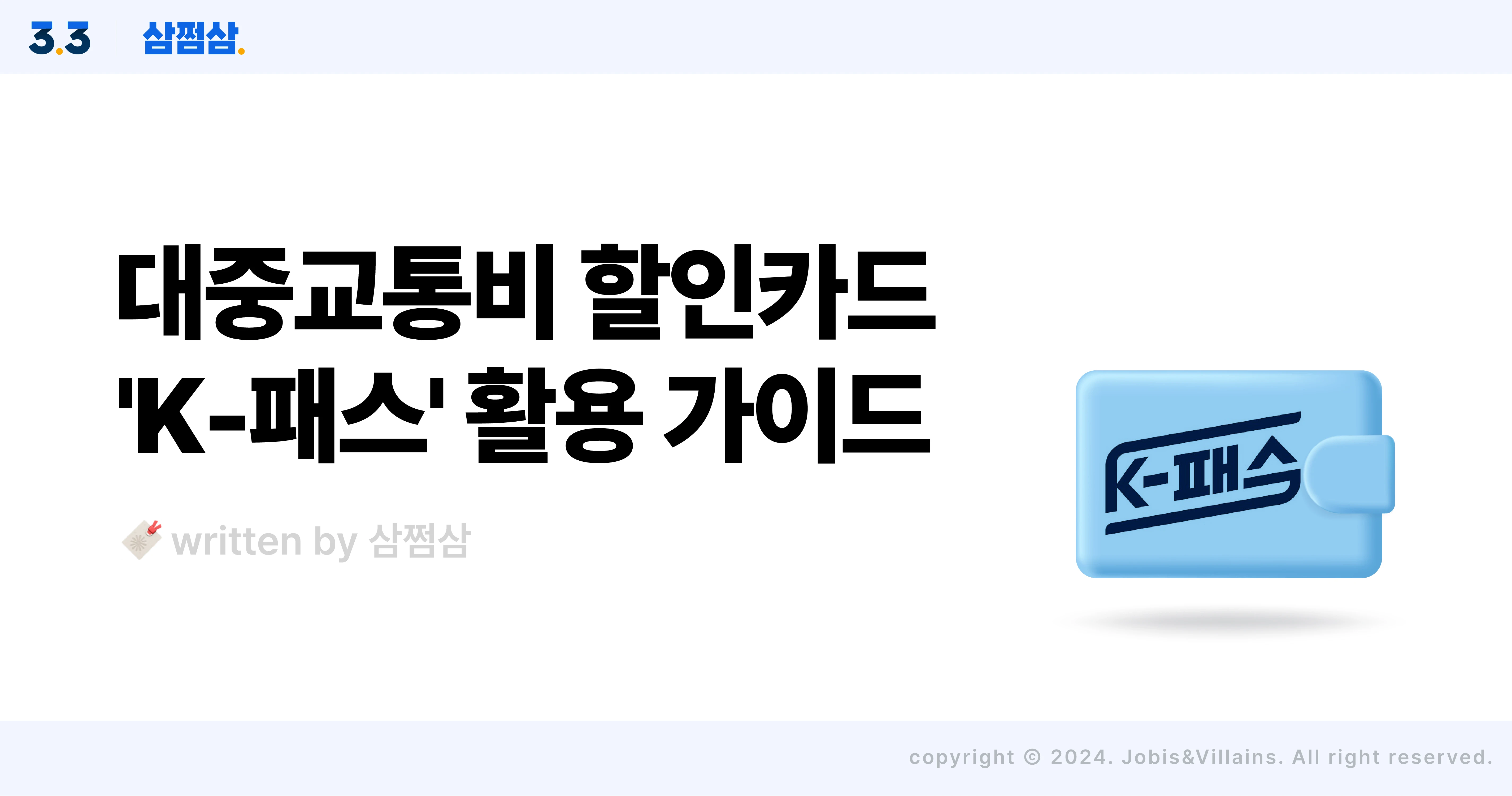 대중교통비 절약 치트키 'K-패스' 활용 가이드(ft.알뜰교통카드 전환) K-패스 활용 가이드 걸어서 출근할 수 있는 거리에 직장을 둔 분들이라면 체감하기 힘드실 거예요. 출퇴근에 지출되는 대중교통비 역시 엄연한 고정비라는 사실을요. 직장인 평균 한 달 교통비가 10만 원이라는 서울시 보도자료도 있듯이 대중교통비는 고정지출의 큰 부분을 차지하는데요. 지난해, 높은 인기였던 알뜰교통카드가 이번 5월 부터 막강한 혜택을 가진 'K-패스 카드'로 돌아왔어요. K-패스 카드에 대한 소개와 혜택을 함께 알려드릴게요. 1. K-패스 카드 대중교통 이용하면 아무나 신청할 수 있나요? 네 맞아요. 대중교통을 이용한다면 누구나 신청할 수 있죠. 단, 주민등록상 만 19세 이상이 되는 성인들만 참여가 가능해요. 안타깝지만 미성년자는 신청이 불가능하답니다. [K-패스 신청 자격] 주민등록상 만 19세 이상 지자체 주민 (외국인도 가능) 본인 명의 휴대폰 소지자 K-패스 홈페이지 or 앱 회원가입 필수 그리고 '대중교통수단'에도 제한이 있는데요. 전국 모든 대중교통 이용 시 사용할 수 있지만, 시외(고속) 버스나 KTX, SRT 등 별도로 탑승권을 발급받아 이용하는 교통수단은 포함되지 않아요. 대신 KTX 등으로 출퇴근하는 분들은 정기 탑승권 발권으로 할인 혜택을 받아볼 수 있으니 참고해 주세요. 2. 대중교통비 얼마나 아낄 수 있나요? 대중교통을 월 15회 이상 이용한다면 이용요금의 일정 비율을 적립해 주는 방식인데요. 청년 또는 저소득층은 더 많은 혜택을 받아볼 수 있어요. [적립금 지급 기준] 월 15회 이상 대중교통 이용 시 최대 60회까지 적립금 지급 (가입 첫 달은 15회 미만도 인정) 60회 초과 시 이용금액 순(높은 금액 기준)으로 60회까지 지급 가능 월 이용료 20만 원 초과 금액은 50%만 적용 알뜰교통카드 적립 기준이었던 출발, 도착 버튼 폐지 [적립율] 일반: 20% 청년: 30% 저소득층: 53% (청년: 만 19~34세/저소득층: 기초생활수급자 및 차상위계층) 예를 들어 월 10만 원의 대중교통비를 지출한다면 일반인은 2만 원, 청년은 3만 원, 저소득층은 무려 5만 3천 원을 아낄 수 있는 셈이랍니다. 이렇게 기본 K-패스 카드 혜택에 지자체별 맞춤 K-패스를 도입한 지역도 있는데요. 대표적으로 경기도의 <The 경기패스>와 인천형 K-패스 카드인 <인천 I패스>가 있어요. 인천 I패스의 경우 65세 이상 어르신의 월별 교통비 30% 환급도 시행하며 The 경기패스는 만 39세까지 청년 적립율 혜택을 받아볼 수 있으니 해당 지역에 거주하는 분들이라면 지자체별 K-패스 카드 혜택도 함께 누려 보시기 바라요. 🚨이럴 땐, 적립금 지급이 되지 않아요! ✔️사업 대상 지역이 아닌 곳으로 주소지가 변경된 경우 ✔️주소지 검증 기간에 재검증을 실시하지 않은 경우 3. K-패스 신청 어디서, 어떻게 하나요? K-패스 카드 신청 방법은 두 가지로 나눠 생각해야 해요. 기존 알뜰교통카드 이용자와 신규 가입자로요. 기존에 알뜰교통카드를 사용하던 분들이라면 알뜰교통카드 홈페이지나 앱에서 K-패스로 회원 전환을 하면 알뜰교통카드 계정 그대로 K-패스를 이용할 수 있어요. 신규 회원이라면 K-패스 신규 가입으로 혜택을 받아볼 수 있고요. Q. 알뜰교통카드에 쌓인 마일리지는 소멸되는 건가요? 가장 걱정하시는 부분 중 하나인데요. 다행히 알뜰교통카드에 쌓인 적립금은 K-패스로 전환해 쓸 수 있어요. 다만, 적립금 전환은 2024년 6월 30일까지만 가능하고, 혜택은 알뜰교통카드 전환일부터 적용된다는 점도 꼭 기억해 두세요! [K-패스 카드 신청 방법] 기존 알뜰교통카드 사용자: 알뜰교통카드 홈페이지나 앱에서 K-패스로 알뜰교통카드 전환(회원 전환) K-패스 신규 가입자 : K-패스 카드 준비> K-패스 홈페이지 or 앱 회원가입> 카드번호 15~16자리 입력> [유효성 체크] 클릭> 필수 약관 동의 후 본인 명의 휴대폰 본인인증 진행> 주민등록번호 입력 후 주소지 검증(외국인은 외국인 등록번호 입력)> 회원정보 입력 후 가입 완료 [카드사별 K-패스 적립금 지급일] 카드사별로 적립금을 지급하는 방식이 조금 다른데요. 적립 월의 익월 5영업일 내 카드사에 지급 요청이 되면 7~9 영업일 이내 지급하기도 하고 정해진 날짜에 일괄적으로 지급하는 카드사도 있어요. 그러니 지급 방식에 따라 나에게 유리한 카드사를 선택하는 것도 하나의 방법이겠죠? 7~9 영업일 이내 지급: 신한카드, 우리카드, 삼성카드, IM원패스 정해진 날짜에 일괄 지급: 국민카드, NH농협카드, 케이뱅크, 이즐(모바일, 카카오, 실물카드), 티머니 내 결제일에 맞춰 지급: 하나카드, BC바로카드, IBK기업은행, 현대카드, 광주은행 5월1일부터 시작된 K-패스 카드. 기존 알뜰교통카드 이용자 분들은 K-패스 카드 전환으로, 이용 내역이 없었던 분들은 신규 카드 발급으로 대중교통비 부담, 확 줄여보시기 바랍니다. - 해당 콘텐츠는 2024. 05. 14 기준으로 작성되었습니다. - 해당 콘텐츠의 내용은 일반적인 정보를 참고 목적으로만 제공하고 있으며, 개개인의 상황에 따라 달리 적용될 수 있습니다. 따라서 콘텐츠를 통해 취득한 일반적인 정보로 인한 직간접적 손해에 대해서 당사는 법적 책임을 지지 않음을 알려드립니다. ⓒ자비스