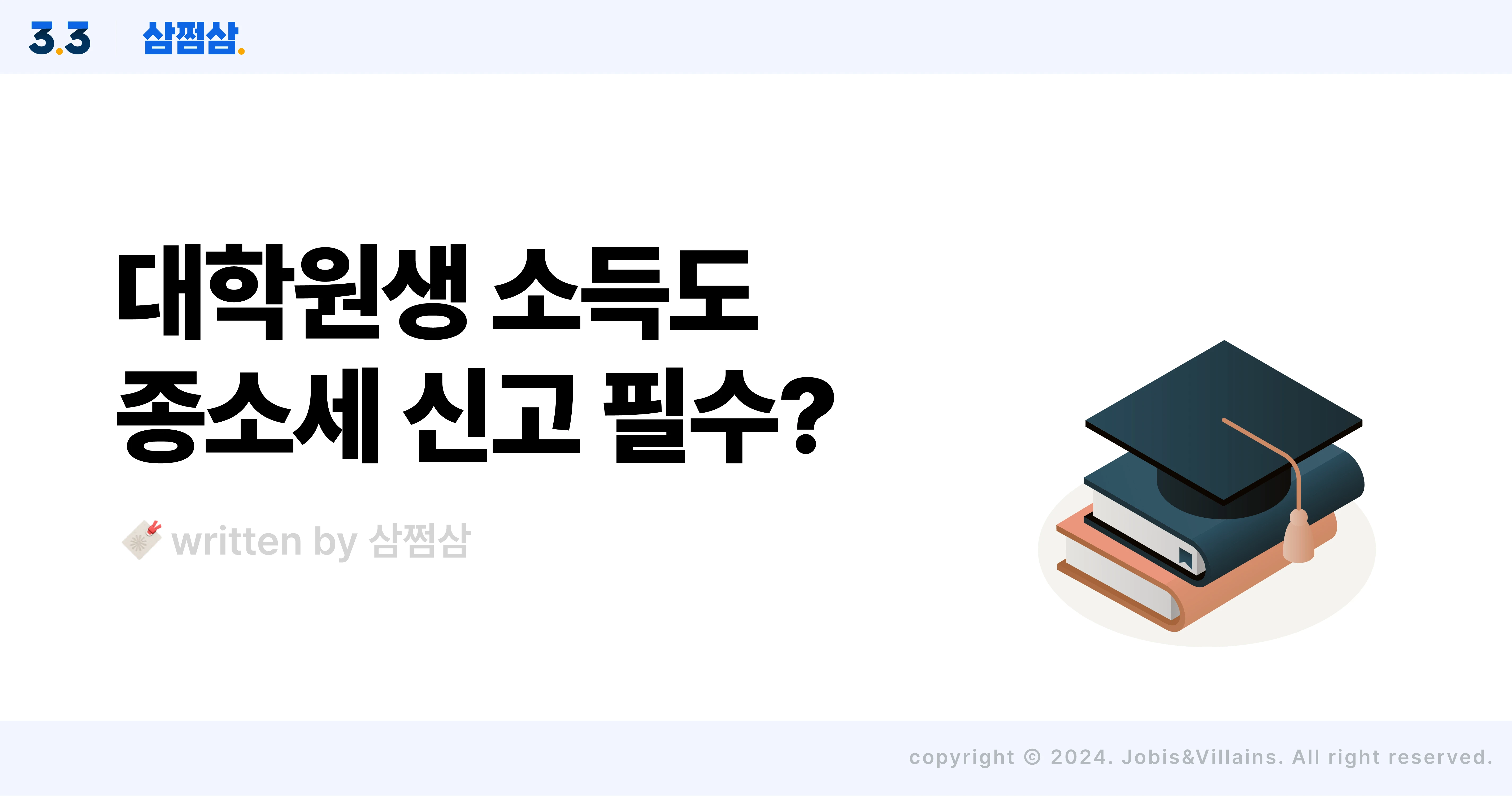 대학원생도 종합소득세 신고하면 환급받을 수 있는 이유 대학원생 종합소득세 신고 매뉴얼 종합소득세 시즌도 어느덧 중반부에 이르렀는데요. 아직까지 '나는 종합소득세와는 관련이 없다'라고 생각하시는 분들 있으시죠? 예를 들면 대학원생처럼요. ‘전 그냥 연구비 조금 받는 게 다인데 신고까지 해야 하나요?’라고 생각하는 대학원생이라면, 집중해 주세요. 어쩌면 연구비에서 떼어 냈던 세금에서 환급금이 들어올 수도 있거든요. 단, 대학원생 종합소득세 신고를 했을 때요! 대학원에서 연구비 받았나요? 따로 소득 활동을 하지 않더라도 대학원에서 연구비를 받은 대학원생은 이 연구비가 소득으로 인정된다는 사실, 알고 계셨나요? 연구비가 소득이라면 실과 바늘처럼 따라오는 게 하나 있죠? 바로 원천징수 세금입니다. 원천세란 모든 원천징수 대상 소득에 부과되는 소득으로, 소득을 지급하는 사람이 세금을 미리 징수하는 제도예요. 이렇게 미리 징수한 세금은 나라와 지역에 소득을 받는 사람 대신 내줍니다. 연구비 역시 원천징수로 세금(소득세)을 미리 떼였기 때문에 종합소득세 신고를 통해 세금 정산 과정을 거쳐야 해요. 이때 본인의 결정 세액과 원천징수 세액을 비교해 그 차액만큼을 돌려받게 되는데요. 연구비 이외에도 조교 월급 등으로 소득세를 납부한 대학원생, 그리고 대학원을 다니다 중퇴한 사람도 모두 종합소득세 신고 대상이니, 5월이 가기 전에 꼭 종합소득세 신고를 통해 환급받아보세요! 대학원생 종합소득세 환급이 이뤄지는 과정 그렇다면 대학원생 종합소득세 환급은 어떻게 이뤄지는 걸까요? 스텝별로 하나씩 알아볼게요. STEP1. 기타소득의 원천징수 세율 종합소득세 신고 대상 소득은 사업소득, 근로소득, 이자소득, 배당소득, 연금소득, 기타소득으로 구분돼요. 이중 대학원생이 번 돈은 기타소득으로 분류되죠. 기타소득이란 어쩌다 한 번씩 생기는 소득으로서 상금이나 복권 당첨금, 인적 용역 소득(강연료나 원고료 등)이 있는데요. 이러한 기타소득엔 대학원생의 각종 프로젝트 연구원 소득도 포함돼요. 이때, 기타소득에서 미리 떼어가는 세금의 비율인 원천징수세율은 22%(소득세 20%, 주민세 2%). 연구비의 거의 1/5에 육박하는 세율인데, 다행히 다 떼어가진 않아요. 대학원생 기타소득에는 필요경비가 인정되거든요. STEP2. 필요경비 인정 돈을 벌기 위해서 쓸 수밖에 없는 지출을 경비라고 하는데요. 기타소득도 필요경비를 인정받아요. 그래서 수입 금액에서 필요경비를 차감한 금액이 소득으로 계산돼, 이 소득을 기준으로 세금이 과세되는 구조죠. 다만 기타소득은 일시적이고, 비정기적인 수입원이라서 다른 소득처럼 경비를 입증하기 어려운 부분이 있어요. 이 부분 때문에 세법에서는 기타소득의 경우 필요경비로 인정되는 비율을 60% 혹은 80%로 미리 정해두고 있답니다. 단, 기타소득 금액이 매 건마다 5만 원 이하인 경우는 소득세를 과세하지 않아요. Q. 강연료로 125,000원을 지급했을 때, 기타소득 금액과 원천징수 세액은 얼마? A. 강연료 125,000(기타소득 지급액) - 75,000원(필요경비 60%)= 실제 기타소득 50,000원 즉, 원천징수세액:0원(∴ 건별 기타소득 금액이 5만 원 이하로 과세최저한에 해당함) 만약 필요경비를 제하기 전 기타소득이 125,000원을 초과하는 경우엔 초과 금액에 원천징수 세율을 곱해주면 돼요. <수입 금액의 60%를 필요경비로 인정하는 기타소득> ① 광업권 · 어업권 · 산업재산권 · 산업정보, 산업상 비밀, 상표권 · 영업권, 토사석의 채취허가에 따른 권리, 지하수의 개발·이용권, 기타 이와 유사한 자산이나 권리를 양도 또는 대여하고 받는 금품 ② 「전자상거래 등에서 소비자보호에 관한 법률」에 따라 통신판매중개를 하는 자를 통하여 물품 또는 장소를 대여하고 연간 수입금액 5백만 원 규모 이하의 사용료로서 받는 금품 ③ 공익사업과 관련된 지역권·지상권을 설정 또는 대여하고 받는 금품 ④ 문예 · 학술 · 미술 · 음악 또는 사진에 속하는 창작품에 대한 원작자로서 받는 원고료, 인세 등 ⑤ 다음의 인적용역을 일시적으로 제공하고 받는 대가 - 고용관계 없는 자가 다수인에게 강연을 하고 받는 강연료 등 - 라디오, 텔레비전 방송 등을 통하여 해설 · 계몽 또는 연기의 심사 등을 하고 받는 보수 등 - 변호사, 공인회계사, 세무사, 건축사, 측량사, 변리사, 그 밖에 전문적 지식 또는 특별한 기능을 가진 자가 그 지식 또는 기능을 활용하여 용역을 제공하고 받는 보수 등 - 그 밖에 고용관계 없이 용역을 제공하고 받는 수당 등 <수입금액의 80%를 필요경비로 인정하는 기타소득> ① 공익법인이 주무관청의 승인을 얻어 시상하는 상금과 부상 ② 다수가 순위 경쟁하는 대회에서 입상자가 받는 상금과 부상 ③ 계약의 위약 또는 해약으로 인하여 받는 위약금과 배상금 중 주택 입주 지체상금 ④ 점당 6천만 원 이상인 서화·골동품(국내 생존작가의 작품 제외)을 양도하고 받는 금품(1억 원 이하 또는 10년 이상 보유 후 양도하는 경우에는 지급금액의 90%) ⑤ 2천만 원 이하의 종교인 소득[1,600만 원 + (2,000만 원 초과 50%), 2,600만 원 + (4,000만 원 초과 30%), 3,200