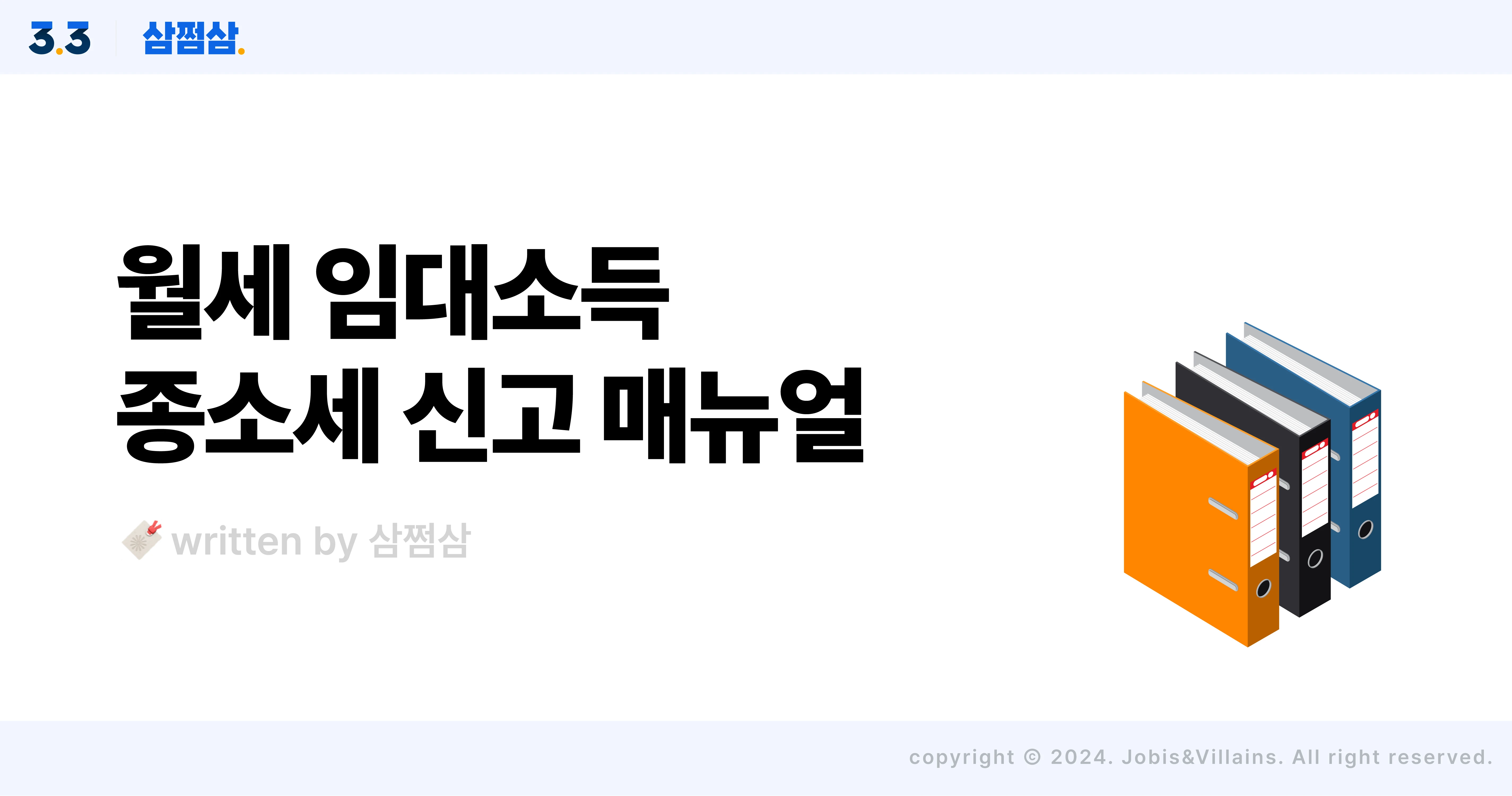 월세 임대소득 종합소득세 신고해야 하나요?(ft. 분리과세 기준) 임대소득 종합소득세 신고 매뉴얼과 절세 전략 최근 전세보다 월세를 받는 임대소득자가 늘어나면서 과세 대상이 되는 분들이 점점 늘어나고 있어요. 그런데 월세를 받는 분들 중 월세 종합소득세 신고 방법을 잘 모르고 계시는 분들이 많은데요. 그래서 오늘은 임대소득이 있는 분들은 위한 종합소득세 신고 궁금증을 풀어드리려고 합니다. 💡 이런 분들, 꼭 읽어 보세요! • 임대소득이 있는 분들 • 자신이 임대소득 세금 신고 대상에 해당하는지 궁금한 분들 • 월세 종합소득세 신고 방법을 알고 싶은 분들 나는 임대소득 종합소득세 신고 대상자일까? 임대소득에 대한 종합소득세를 따져보기 전에, 먼저 임대소득 세금신고 대상자인지 확인해 봐야 해요. 임대소득 세금신고 대상자 여부는 보유 주택 수에 따라 달라진답니다. (부부합산 주택 수로 계산) 먼저 아래 표를 보고, 자신의 주택 보유 수에 따라 과세대상인지 아닌지 가늠해 보세요. 구분 1주택 2주택 3주택 과세대상 O 1) 국외주택 월세 수입2) 기준시가 *9억원 초과 주택 월세 수입*23년 귀속 주택부터는 12억원 모든 월세 수입 1) 모든 월세 수입2) 비소형주택 3채 이상 보유 & 해당 보증금·전세금 합계 3억원 초과시 해당 보증금·전세금 과세대상 X 1) 국내 기준시가 *9억원 이하 주택 월세 수입*23년 귀속 주택부터는 12억 원2) 모든 보증금 및 전세금 모든 보증금 및 전세금 1) 소형주택의 보증금·전세금2) 비소형주택 3채 미만 보유시 보증금·전세금3) 비소형주택 보증금·전세금 합계 3억원 이하인 경우 보증금·전세금 위 표에서 알 수 있듯이 임대소득은 ‘월세 소득’과 ‘전세보증금’으로 나뉘며, 세금 역시 이 두 가지에 대해 내야 해요. 그런데 ✅ 1주택자는 ‘월세소득, 전세보증금’ 모두 과세 대상이 되지 않아요. ✅ 2주택자는 ‘월세 소득’에 대해서는 과세를 하지만, ‘전세보증금’에 대해서는 과세하지 않고요. 반면 ✅ 3주택자부터는 ‘월세 소득’은 물론, 3억이 초과하는 ‘전세보증금’에 대해 과세한답니다. Q. 소형 주택을 가지고 있는 다주택자의 경우는? 다주택자인데 소형 주택을 보유한 경우, 소형 주택은 전세보증금 합계 금액에서 제외돼요. 여기서 소형 주택은 ① 주거전용 면적이 40제곱미터 이하이고, ② 과세기간 기준시가 2억 원 이하인 주택을 의미하는데요. 이때, 기준시가는 해당 과세연도의 공시 기준이기 때문에, 갑자기 공시 가격이 올라 2억 원을 초과한다면 그때부터는 전세보증금 합계에 포함될 수 있다는 사실도 함께 알아두시기 바라요. 임대소득 세금 계산 방법은? 월세 소득의 경우 월세에 곱하기 12개월을 하면 1년간의 소득이 산정되는데요. 전세 보증금 계산은 '소득'이라는 걸 어떻게 책정해야 할까요? 전세보증금은 어차피 돌려줘야 할 돈인데, 왜 세금을 내야 하냐고 생각하시는 분들 많으시죠? 이때, 전세보증금은 이 금액으로 이자소득을 냈음을 간주해 ‘간주임대료’라는 개념을 적용한답니다. 간주임대료: (보증금 합계액 - 3억 원) × 0.6 × 정기예금이자율 예를 들어, 5억 원짜리 전세를 놓고 있다면 이에 대한 간주임대료는 (5억 - 3억) × 0.6 × 1.2% = 144만 원이 산출되는 식이죠. 즉, 5억 원짜리 전세 보증금에 대한 세금은 144만 원이 되는 거랍니다. 전세보증금 역시 이렇게 간주임대료 세금을 내야 하는데요. 다주택자분들 중 사업장 현황 신고를 하지 않거나, 누락하여 하는 분들이 있어요. 그러나 세무당국에서는 전월세 신고제를 운영하고 있기 때문에 결국에는 모두 들키게 되죠. 만약 신고하지 않는다면 무신고 가산세 20%를 더 납부해야 하므로, 정확하고 솔직하게 신고하는 걸 추천드려요. 임대소득 종합소득세 절세 전략 임대소득은 그 금액 수준별로 신고 방법을 선택해 절세할 수 있는 방법이 있는데요. 1년간 2,000만 원 이하의 임대소득이 났다면 종합과세할 건지, 분리과세할 건지 선택하는 거예요. 예를 들어 주택임대 소득 외에 다른 소득(근로소득, 배당소득, 이자소득 등)이 있다면 임대소득 분리과세하는 게 유리해요. 임대소득 분리과세는 14%의 단일 세율이 적용되기 때문인데요. 만약, 임대소득을 합산한 종합소득 금액이 14% 이상의 세율을 받는다면 같은 수입에 대해 더 많은 비율로 세금을 내야 하는 꼴이 돼버린답니다. 임대소득 종합소득세 신고 절세전략은 삼쩜삼에서! 앞서 말씀드렸듯이 임대 소득에도 세금이란 게 붙어요. 하지만 조금 신경 쓰면 절세할 수 있는 방법도 존재하죠. 하지만 모든 소득을 일일이 계산해 분리과세할지 종합과세할지 판단하는 건 너무 어려운 일. 이런 일은 삼쩜삼에 맡겨주세요. 2천만 가입자가 이용하고 있는 삼쩜삼은 그간 기술력의 발전으로 절세전략을 통한 최대 환급액을 찾아준답니다. 그것도 세무대리인 수임동의 없이 말이죠. 많은 고객님의 환급금을 찾아드린 4년간의 경험과 노하우를 바탕으로 삼쩜삼은 더욱 발전하고 있어요. ✅ 2천만 가입자 ✅ 누적 신고 건수 886만 건 ✅ 누적 환급액 9,800억 원 이제 여러분이 경험하실 차례입니다. 2024년 종합소득세 신고 기간이 열흘도 남지 않았어요. 아직 