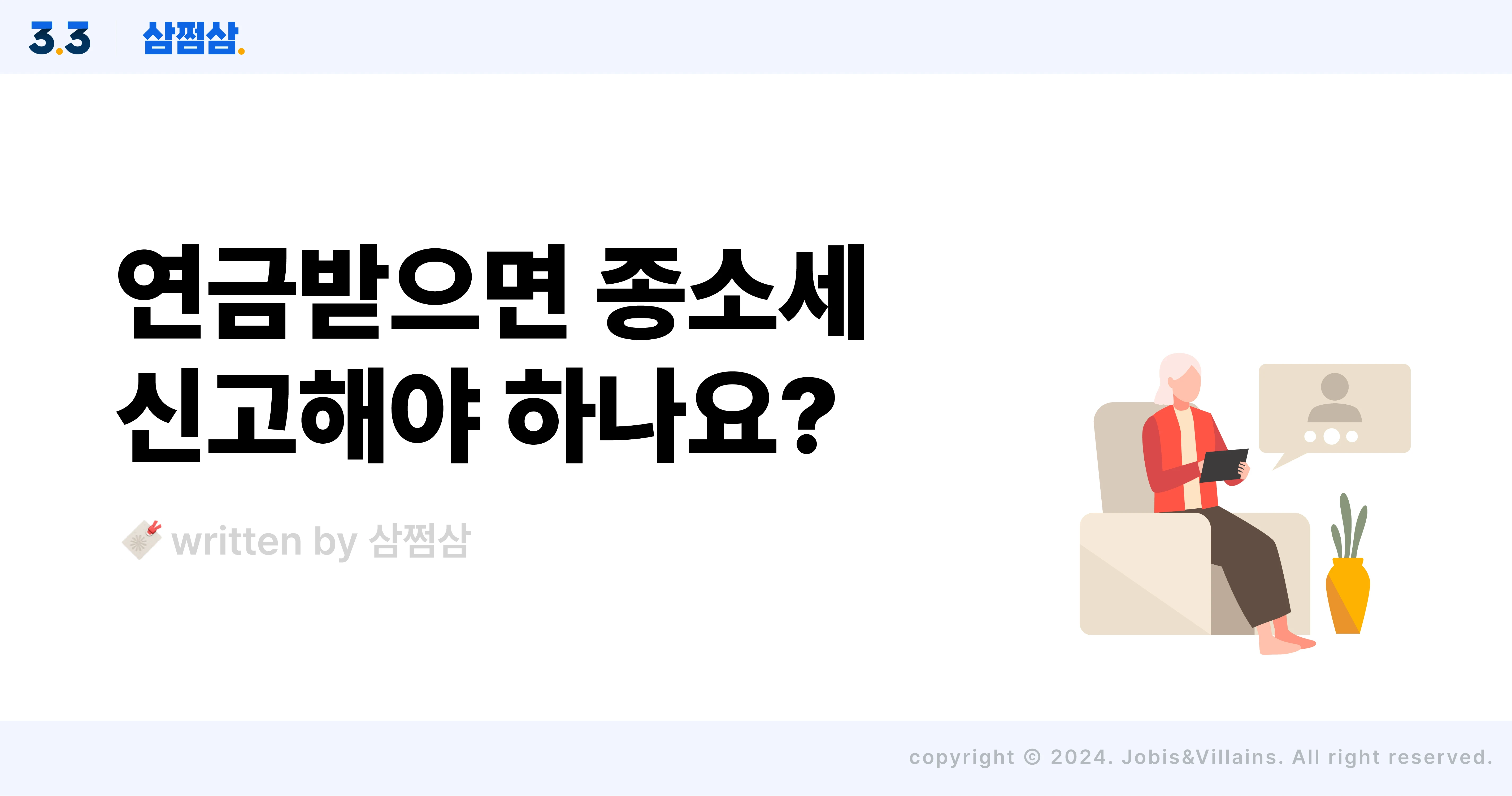 국민연금 종합소득세 합산 신고해야 하나요?(ft. 공적연금, 사적연금 ) 연금소득 종합소득세 신고 매뉴얼 요즘 노후대비로 연금저축 하나쯤 들어놓으셨을 거예요. 어르신들 중에는 벌써 연금을 받는 분들도 계실 텐데요. 연금도 소득의 한 부분이라 일정 금액이 넘을 때는 종합소득세 신고를 해주셔야 한다는 사실, 혹시 알고 계셨나요? 특히 국민연금 종합소득세 신고에 관해 궁금증이 많으실 거예요. 오늘은 연금소득 세금과 관련해 연금소득자가 알아두어야 할 필수 사항을 정리해 봤어요. 어떤 연금을 얼마나 받는지에 따라 신고 여부, 세액 계산에 있어 차이가 날 수 있으니 눈 크게 뜨고 잘 따라오세요. 공적연금 vs 사적연금 우리가 근로소득이나 사업소득을 벌어들일 때, 원천징수의무자가 원천징수하고 남은 금액을 실수령하는 것처럼, 연금소득 또한 원천징수하고 나머지 금액을 지급받아요. 단, 여기서 ‘공적연금이냐 vs 사적연금이냐’에 따라 원천징수 방법이 달라지는데요. 우선, 연금소득에는 공적연금 관련 법에 따른 연금(=공적연금소득)과 연금계좌에서 연금수령하는 소득(=사적연금소득)이 있어요. 공적연금소득은 공무원·군인·별정 우체국·사학 연금과 보통 회사원들이 매달 내는 국민연금, 공무원 연금으로 받는 소득을 말하죠. 반면, 사적연금소득은 *연금저축이라는 명칭으로 설정하는 계좌(연금저축계좌)와 확정기여형퇴직연금계좌(DC), 개인형퇴직연금계좌(IRP) 등 퇴직연금계좌로부터 수령하는 소득을 말해요. *연금저축: 연금저축보험(생명보험, 손해보험), 연금저축펀드(자산운용사), 연금저축신탁(은행), 연금저축공제(기타 공제사) 1) 공적연금의 과세 방법 매달 원천징수의무자가 공적연금소득을 지급할 때는 <연금소득간이세액표>에 따른 세금을 원천징수하고 남은 금액을 지급해요. 만일 공적연금소득 외에 다른 소득(근로소득, 사업소득, 배당소득, 이자소득, 기타소득)이 없다면 별도의 종합소득세 신고할 필요 없이, 연금을 지급하는 공단에서 연말정산을 해주면 세금 계산이 끝나요. 따라서 공무원 연금, 국민연금 종합소득세 신고를 할 필요도 없죠. 하지만, 적더라도 다른 소득이 있다면 공무원연금, 국민연금 종합소득세 합산 신고를 해주셔야 하는데요. 이때 공적연금 종합소득세 계산 구조는 다음과 같아요. ① 연금소득수입금액 - 비과세소득(장해연금) = 총 연금액 산정 ② 총 연금액 - 연금소득공제(아래 표 참고) = 연금소득금액 산정 ③ 연금소득금액에서 기본공제 및 추가공제 적용 ·기본공제: 본인·배우자·부양가족(1인 150만 원) ·추가공제: 경로우대(70세 이상 100만 원), 장애인(200만 원), 부녀자공제(50만 원) ④ 과세표준 x 기본세율(6.6% ~ 46.2%) 적용한 금액에서 누진공제액을 차감한 산출세액 산정 <연금소득공제> 총 연금액 연금소득공제 350만 원 이하 총 연금액 전액 700만 원 이하 350만 원+350만 원 초과액 40% 1,400만 원 이하 490만 원+700만 원 초과액 20% 1,400만 원 초과 630만 원+1400만 원 초과액 10% 2) 사적연금의 과세 방법 개인이 납입해 받는 사적연금소득은 세액공제받지 못한 개인부담금, 과세이연 퇴직금, 세액공제받은 개인부담금, 운용수익 4가지 재원으로 구성돼요. 만일 사적연금을 일시금이 아닌 연금으로 수령할 때는 재원에 따라 과세가 달리 적용되죠. <연금 수령 시 재원에 따른 원천징수 세율> 구분 연금소득세율 연금소득 종합과세 대상 여부 세액공제받지 못한 개인부담금 비과세 해당 없음 과세이연 퇴직금 퇴직소득세율의 70%(실제 연금수령 11년차 이후 60%) 분리과세(금액 무관) 세액공제 받은 개인 부담금, 운용수익 만 55~69세 5.5%만 70~79세 4.4%만 80세 이상 3.3% 연 1,500만 원 초과 시 종합과세or 16.5% 분리과세 중 선택 ① 세액공제받지 못한 납입액 : 세제 혜택을 받지 못했기 때문에 연금을 수령할 때도 과세하지 않아요. 즉, 종합소득세 과세 대상이 아니죠. ② 과세이연 퇴직금 : 퇴직소득세율의 70%가 적용되며, 금액과 무관하게 분리과세 대상입니다. ③ 세액공제받은 개인 부담금과 운용수익 : 연금 소득자의 연령에 따라 3.3~5.5%의 연금소득세율을 차감한 후 수령하게 되며, 이때 수령액이 1,500만 원 이하라면 원천징수만으로 세금 계산이 종결돼요. 하지만, 수령액이 1,500만 원을 초과한다면 종합과세 또는 16.5% 분리과세 중 유리한 것을 선택해 종합소득세 신고를 해주셔야 해요. 단, 종신형 연금보험(사망 시까지 연금수령)의 수령액은 4.4%의 세율을 적용받아요. 한편, 연금계좌를 중도해지해 일시금으로 지급받을 때는 연금소득세가 아닌 15%의 세율인 기타소득세로 원천징수되며, 이 경우 분리과세 대상에 해당해 은행 등에서 원천징수된 경우에는 별도로 종합소득세를 신고하지 않아도 돼요. 소득의 원천 연금 외 수령 소득구분 과세구분 원천징수세율 과세제외 - 과세제외 - 퇴직연금 계좌원천 아연퇴직소득 퇴직소득 분류과세 연금외수령세율(이연퇴직소득세/이연퇴직소득) 세액공제 운용수익 *기타소득 분리과세 15% (* 의료 목적 및 부득이한 사유로 연금 외 수령하는 경우 연금소득으로 과세) 연금소득 종합소득세 절세 Tip ✅ 공적연금의 수령 시기 중요해요. 만