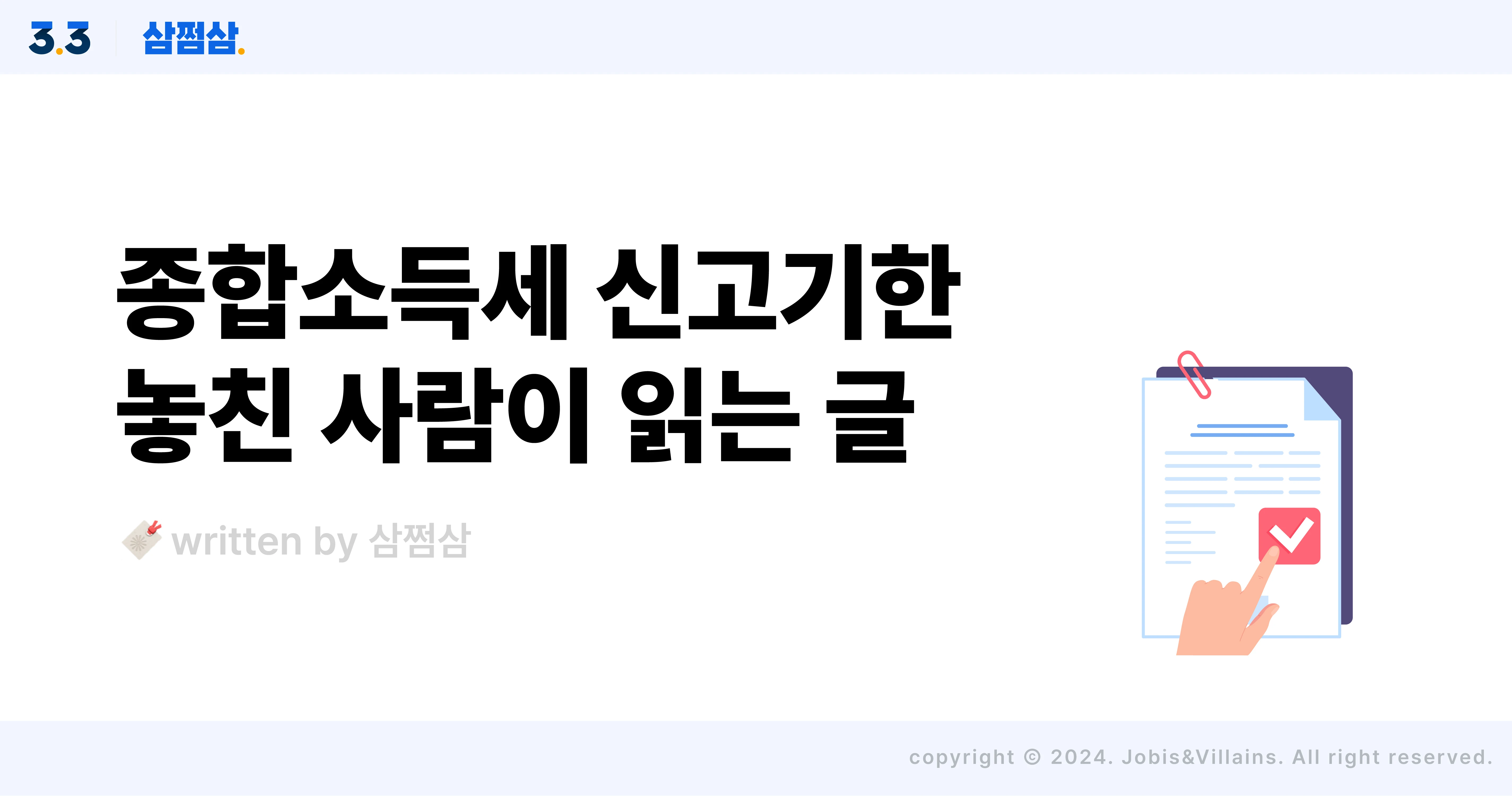 종합소득세 기한 후 신고로 가산세 줄이는 방법 종합소득세 기한 후 신고 방법 종합소득세 신고 막바지. 혹시 아직도 준비조차 안 된 분들 있으신가요? 지금 이 글을 읽고 있는 순간에 바로 종소세 신고를 하면 좋겠지만 혹여라도 기한을 넘긴다면 종합소득세 기한 후 신고 제도를 이용해 보세요. 종합소득세 신고 기간 지났네! 그럼 이대로 끝? '종합소득세 신고해야지'하면서 5월 말까지 흘러오지 않았나요? 피치 못할 사정으로 기한을 넘겼다면 그대로 포기는 안 돼요. 왜냐? 세금신고는 해도 그만, 안 해도 그만인 문제가 아니거든요. 무신고로 인한 가산세는 물론, 해명자료까지 만들어 제출해야 하는 번거로움이 생길 수도 있기 때문이에요. 그렇다면 어떻게 해야 할까요? 방법은 종합소득세 기한 후 신고로 되도록 빨리 세금 신고를 마무리하는 것뿐이에요. 종합소득세 기한 후 신고는 빨리하면 할수록 최대 50%의 가산세 감면 혜택까지 주니, 서둘러야겠죠? <종합소득세 기한 후 신고 가산세 감면율> 신고기한 경과 후 1개월 이내: 50% 신고기한 경과 후 3개월 이내: 30% 신고기한 경과 후 6개월 이내: 20% 3개월이나, 6개월이나 감면율 차이 별로 없다고 미루실 생각이라면 큰일 날 소리! 가산세는 무신고 가산세 외에도 '납부지연가산세'라는 게 있거든요. 만약 납부해야 할 세액이 있음에도 신고 및 납부를 미룬다면 납부가 지연된 일수만큼 가산세는 점점 불어나게 돼요. 그러니 기한 후 신고는 빠를수록 좋다!라는 결론이 나오죠? 종합소득세 기한 후 신고 어떻게? 기한 후 신고 막상 하려니 어디서, 어떻게 하는지 모르시겠다고요? 기한 후 신고 역시 정기 신고와 마찬가지로 직접 신고할 수도 있고 삼쩜삼 앱을 통해서도 가능해요. <기한 후 신고 직접 하는 방법> 홈택스 로그인 세금신고 > 일반 신고 > 기한 후 신고 귀속 연도 2023년 선택 기본 정보 입력 소득 내역 입력 공제 항목 체크 및 입력 무신고 납부세액, 감면율, 미납일수, 미납 세액 등 입력 종합소득세 기한 후 신고서 제출 기한 후 신고는 정기 신고 절차에 가산세까지 입력해야 하기 때문에 조금 더 시간을 써야 해요. 직접 신고로 인한 번거로움을 덜고 싶다면 삼쩜삼 기한 후 신고 서비스를 이용하는 것도 좋은 방법이에요. 빠르고 간편한 절차에, 정기 신고와 마찬가지로 여러분에게 적용되는 최대 공제를 찾아 가산세로 인한 리스크를 최대한 줄여준답니다. <삼쩜삼 기한 후 신고 방법> 삼쩜삼 앱 접속 카카오톡 간편 본인 인증 기본 정보 입력 및 추가 공제 항목 입력 기한 후 신고 및 납부 완료 기한 후 신고까지 안 하면 어떻게 될까? 그럼에도 불구하고 종합소득세 신고 안 하면 과연 불이익이 있을까요? 네 있어요. 크게 3가지인데요. 첫째, 소득세 추징액이 높아져요. 소득에 대한 신고를 본인이 직접 하지 않는다면 국세청에서는 기준경비율을 적용한 추계방식으로 소득세를 임의 산정해요. 그런데 이게 납세자에겐 가장 불리한 방식이라 절세효과는 고사하고 더 많은 소득세를 내게 될 가능성이 크답니다. 둘째, 건강보험료도 올라가요. 소득액이 높아지니 당연히 건강보험료도 오르겠죠? 건강보험료는 소득액을 기준으로 산정되기 때문이에요. 셋째, 소득증빙이 필수인 대출, 근로장려금 등에 제한이 생겨요. 살면서 대출 한 번 안내는 사람이 얼마나 될까요? 그런데 대출은 돈을 갚을 수 있는 여력이 되는지를 검토한 후 그 여부가 결정되기 때문에 소득이 없다고 판단되면 대출은 거의 불가능하다고 봐야 해요. 또, 최대 330만 원의 지원금을 받을 수 있는 근로장려금 역시 '근로하는 사람'을 대상으로 하기 때문에 '소득이 없다=근로하지 않는다'로 판단해 근로장려금 신청이 아예 불가능할 수도 있어요. 종합소득세 기한 후 신고. 왜 해야 하는지, 어떻게 해야 하는지 이제 아셨죠? 가장 좋은 방법은 며칠 남은 종합소득세 신고 기한을 이용해 신고를 마무리하는 거지만 혹시라도 기한을 놓쳤다면 최대한 빨리 기한 후 신고해 불이익 받지 않으시기 바라요. - 해당 콘텐츠는 2024. 5. 29 기준으로 작성되었습니다. - 해당 콘텐츠의 내용은 일반적인 정보를 참고 목적으로만 제공하고 있으며, 개개인의 상황에 따라 달리 적용될 수 있습니다. 따라서 콘텐츠를 통해 취득한 일반적인 정보로 인한 직간접적 손해에 대해서 당사는 법적 책임을 지지 않음을 알려드립니다. ⓒ자비스앤빌런즈, 무단 전제 및 배포 금지 종합소득세_기한후신고_방법_가산세_감면_불이익_소득세_추징_건강보험료1.webp300 킬로바이트 종합소득세_기한후신고_방법_가산세_감면_불이익_소득세_추징_건강보험료2.webp400 킬로바이트 종합소득세_기한후신고_방법_가산세_감면_불이익_소득세_추징_건강보험료3.webp300 킬로바이트 종합소득세_기한후신고_방법_가산세_감면_불이익_소득세_추징_건강보험료_직사각.webp100 킬로바이트 도움이 되었습니까? 예 아니요 1명 중 0명이 도움이 되었다고 했습니다. 어떤 부분이 아쉬웠나요? 도움말에 대한 피드백을 남겨주세요.