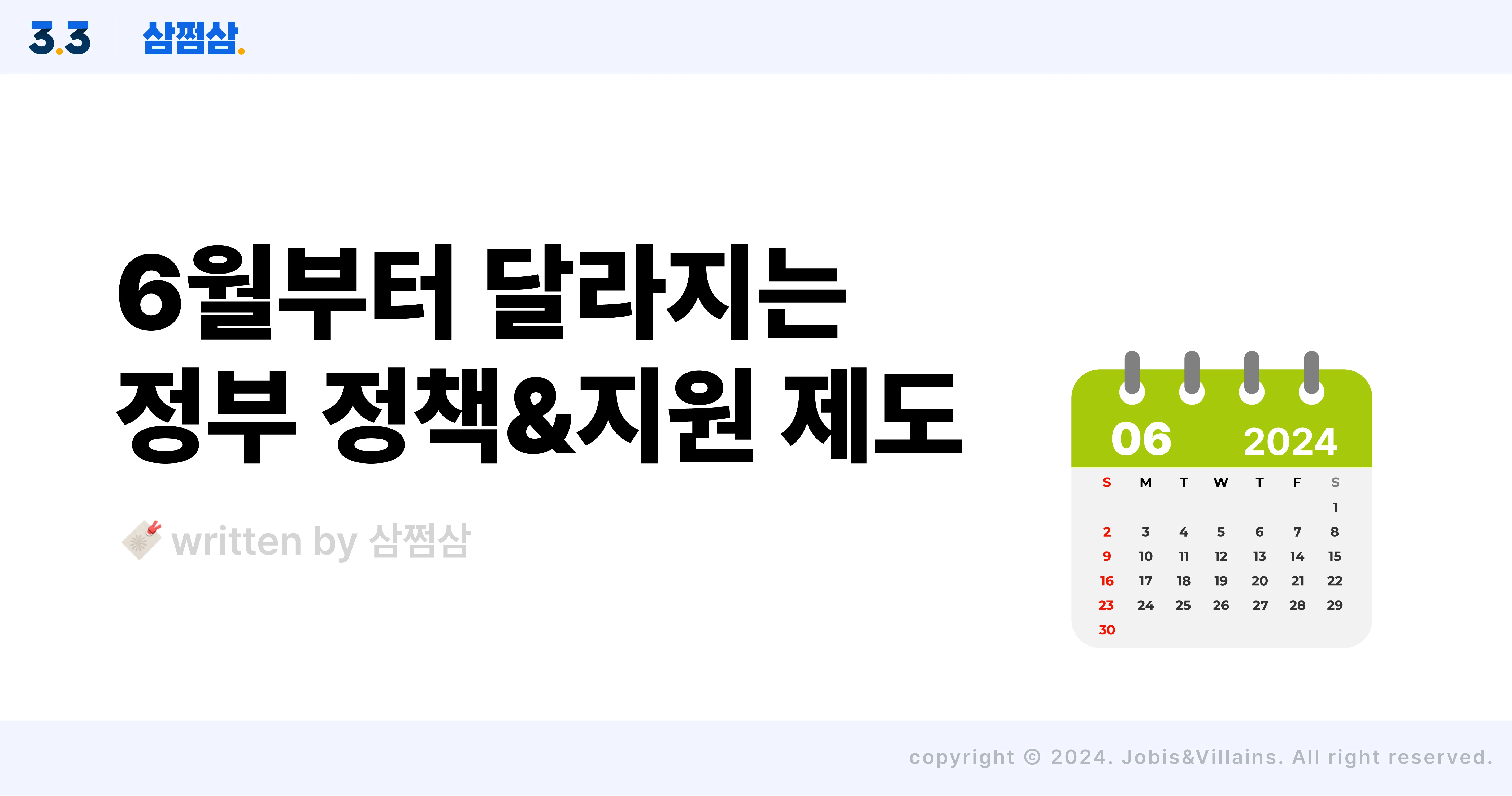 숙박, 교통비 할인 등 6월부터 달라지는 정부 정책&지원 제도 6월 정부 정책&지원 제도 벌써 2024년의 절반인 6월이 찾아왔어요. 이번 달은 어떤 정부 정책과 지원제도가 우리를 설레게 할 지 한 번 알아볼까요? 1. 6월 여행갈 때 숙박비, 교통비 할인 받으세요 (6.1~6.30) 6월은 여행가는 달. 한국관광공사와 지자체, 관광업체가 다양한 여행프로그램과 함께 숙박비, 교통비 할인을 실시합니다. 디지털 관광주민증을 발급받으면 해당 지역 관광 시설에서 할인을 받을 수 있어요. [숙박비 할인 혜택] 비수도권 숙박 시 할인(서울, 경기, 인천 제외) 7만 원 이상 숙박 시 3만 원 할인 / 2만 원~7만 원 숙박 시 2만 원 할인 한국관광 품질인증 숙소 5만 원 할인 고캠핑 연동 캠핑장 할인 [교통비 할인 혜택] KTX 주말 30%, 주중 50% 할인(숙박 및 체험권 결합 구매 시) 서해금빛열차, 남도해양열차, 동해산타열차, 백두대간협곡열차, 정선아리랑열차 운임 최대 50% 할인 내일로패스 1만 원 할인(판매: 5월 16일~6월 30일/탑승: 6월 1일~7월 14일) 진에어 항공요금 2만 원 지원(내륙항공 노선 이용요금, 반려동물 왕복 운임 전액) - 판매: 5월 15일 ~ 6월 30일 - 탑승: 6월 11일 ~ 7월 14일(반려동물 6월 1일~) 카셰어링 요금 할인 -그린카: 대여료 50%, 보험료 5~10% 할인 -쏘카: 사천, 울산, 김해, 포항경주, 대구, 광주, 여수, 청주 공항 쏘카존에서 10시간 이상 대여 시 40% 요금 할인 시티투어버스 탑승권 50% 할인(카카오 T 연계) [여행 상품] 지마켓 지역 여행상품 최대 30% 할인 웰촌 농촌여행상품 최대 50% 할인 테마별 여행상품 최대 60% 할인 [디지털 관광주민증 발급 및 사용 방법] 대한민국 구석구석 앱에서 발급 신청 해당 지역 시설에서 QR 스캔 해당 시설에서 할인증 제시 후 할인 2. 스팸문자가 줄어들 예정이에요 (6.1~) 이제 대량 문자를 보낼 땐 전송자격인증을 받아야 해요. 그동안 법의 사각지대에서 단속이 어려웠던 불법 스팸문자가 줄어들 것으로 기대하고 있어요. 주요내용: 광고성 문자 대량 전송 자격 부여제도 시행 인증주최: 문자중계사 10개사 인증대상: 문자재판매사업자 인증신청 방법: 전송자격인증제 누리집 신청 문자전송 자격: 신청정보 일치 여부(대표자, 사무실 확보 등)/문자전송 시스템 구비/최초발신자 식별코드 삽입여부 등 3. 노란우산공제금 지급 사유가 확대돼요 (6.1~) 사업자들의 퇴직연금 제도인 노란우산공제의 지급 사유가 확대됩니다. 기존에는 폐업, 사망, 퇴임, 고령 시에만 받을 수 있었는데요. 질병이나 자연재해 등 피해가 발생했을 때에도 공제금 지급이 가능해져요. 여기서 추가된 4가지를 사유로 공제금을 지급받을 경우에는 공제금을 중간정산하고 계약을 유지할 수 있어요. [공제금 지급 사유] 구분 이전 추가(6.1~) 공제금 지급 사유 폐업, 사망, 퇴임, 고령 * 퇴임 : 법인대표 퇴임 * 노령 : 60세 이상 / 10년 이상 가입 자연・ 사회재난, 질병 및 부상, 회생·파산 4. 전국 자연휴양림 성수기 추첨 접수 시작 (6.10~6.17) 자연속에서 편안한 쉼을 느낄 수 있는 자연휴양림. 무엇보다 경제적인 가격에 객실 및 야영 시설을 즐길 수 있다는 게 가장 큰 장점인데요. 여름 성수기 자연휴양림 신청 접수가 6월 10일 시작됩니다. [신청기간] 6월 10일 오전 9시~6월 17일 오후 6시 숲나들e 누리집에서 신청 (미결제, 미당첨 객실은 6월 27일 오전 10시에 신청 가능) [결과 발표일] 6월 20일 오전 10시 숲나들e 마이페이지, 알림톡으로 발표 [결제 기간] 6월 20일 오전 10시~6월 26일 오후 6시 [이용기간] 7월 15일~8월 24일 5. 경부선 평일 버스전용차로가 안성까지 연장돼요(6.3~) 출퇴근 차로 정체 개선, 일반차로 확대 등의 이유로 경부선 평일 버스전용차로가 현재 양재~오산에서 안성까지 연장돼요. 이와 더불어 영동선 버스전용차로 신갈~호법 구간은 폐지됩니다. 조정 구간: 경부선 버스전용차로 안성~양재 구간 적용 시간: 평일 7시~21시 6. 6월은 호국보훈의 달, 보훈가족에게는 특별한 혜택이 있어요 (6.1~6.30) 6월은 호국보훈의 달. 보훈가족에게 항공료, 문화시설 이용료는 물론, 택배비 할인 혜택까지 드립니다. 1) 항공료 할인 할인 기간: 탑승일 기준 6월 1일~6월 30일 이용방법: 전화 또는 온라인 예매 후 매표소에서 본인 또는 가족 인증 후 탑승 할인율: 30~50%(항공사별 상이) 2) 열차 무임 탑승 대상 열차: ITX-새마을, ITX-마음, 새마을호, 무궁화호, 누리로 기간: 6월 5일~6월 7일 혜택 대상: 국가유공자 본인 및 동반가족 1인/유족 수권자 1인 발매방법: 온라인 예매 후 창구에서 무임승차권으로 교환/ 창구에서 직접 발매 발매시기: 5월 20일 이후부터 3) 무료 택배 지원 CJ 대한통운 택배 무료 발송(개인당 1일 3박스) - 국가보훈대상자 본인, 선순위 유족 이용 가능 4) 문화시설 이용 혜택 참여업체 혜택 이용대상 에버랜드 기간 중 1회 무료(동반 1인은 50% 요금 감면) 국가보훈대상자 본인, 선순위 유족 서울 남산 케이블카 케이블카 무료 국가보훈대상자 본인, 선순위 유족 강원 정선 하이원 리조트 객실: 55%~77% 할인워터월드: 50% 할인 국가보훈대상자 본인, 선순위 유족 및 가족 강원 삼척 하이원 추추파크 객실 이용료, 체험시설 할인 국가보훈대상자 본인, 선순위 유족 및 가족 여수 