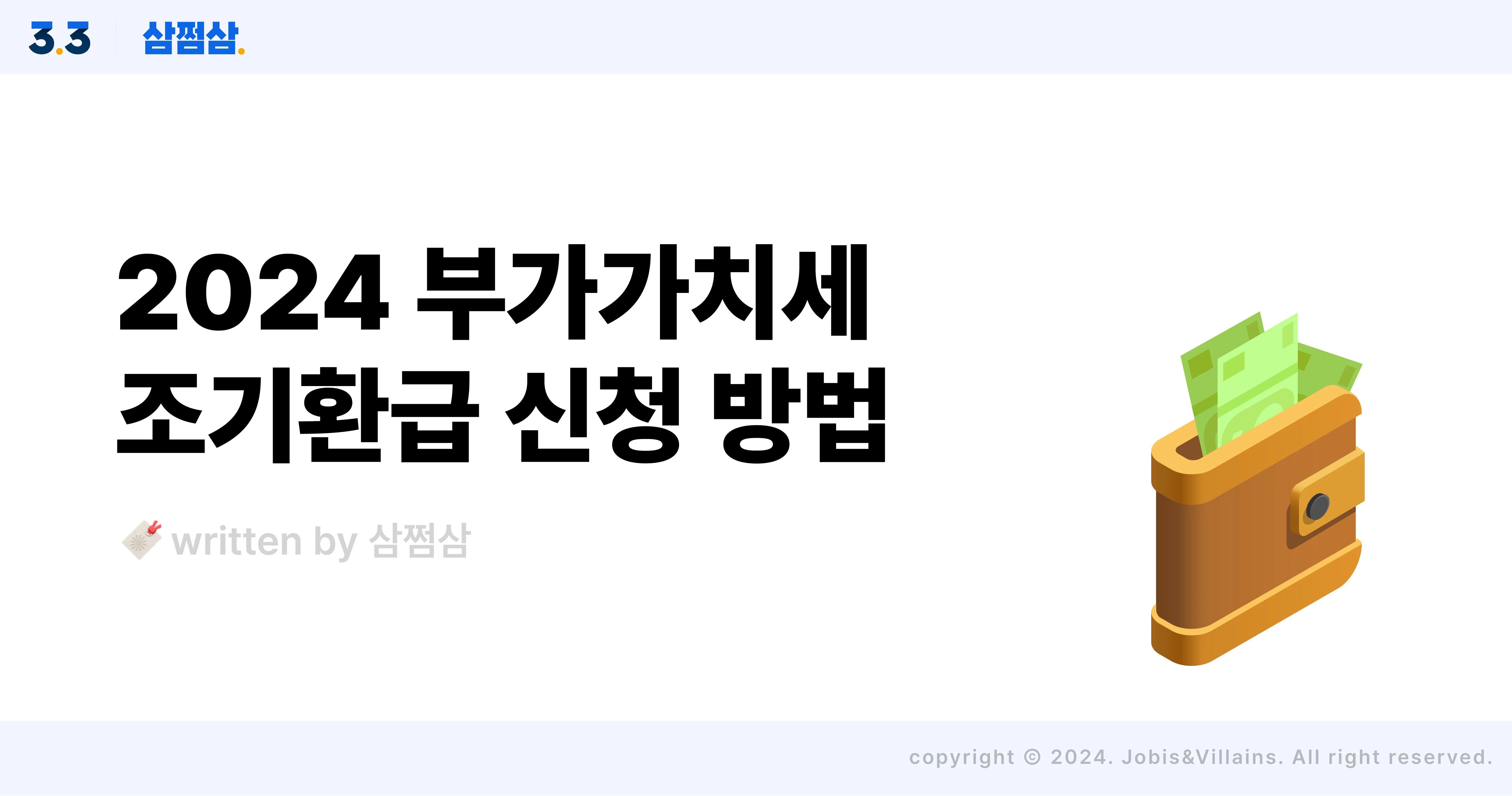 부가세 조기환급 방법&기간 요약정리 부가세 조기환급 방법&기간 원래 부가세 환급은 확정신고 기한 마감일로부터 한 달이 지난 후에야 받을 수 있어요. 그런데, 오늘 알려드릴 3가지 경우에 해당하면 남들보다 빠르게 부가세 조기 환급받을 수 있어요. 누가 조기환급 대상자이며, 어떻게 조기환급받을 수 있는지 지금부터 설명드릴게요! 혹시 나도 조기환급 대상자? 사업자든, 근로자든 환급금이 있다면 빨리 돌려받고 싶은 게 당연지사. 특히, 사업자는 조기환급으로 받은 돈을 사업 자금으로 융통할 수 있어 더 유용해요. 다음 3가지에 해당하는 사업자라면 부가세 조기환급을 받을 수 있는 조건이 된답니다. 첫째. 영세율 적용받는 사업자 영세율이란 수출하는 재화와 용역의 부가가치세 매출세액을 0%로 적용하는 제도예요. 쉽게 말해, 수출품에 대해 소비자로부터 받아야 할 부가세가 없다는 거죠. 이렇게 되면 부가가치세 부담을 제거해 수출 시장에서의 가격 경쟁력을 높일 수 있어요. 영세율 적용받는 사업자가 조기환급 대상인 것도 비슷한 이치예요. 수출자의 자금 순환을 도와 간접적으로나마 수출을 지원하기 위해서 조기환급을 해주고 있답니다. 둘째. 사업 설비를 신설하거나 취득, 확장 또는 증축한 사업자 사무실 인테리어 공사를 했다거나 아니면 제품 생산에 필요한 설비를 구입했다거나 하면 갑자기 큰돈이 뭉텅이로 나가죠. 들어올 돈은 일정한데, 지출이 크게 발생하면 현금 흐름이 꽉 막혀 막막해질 거예요. 따라서 이런 경우는 부가세 조기환급을 해줘서 조금이나마 숨통을 틔워주고 있어요. 한편, 이제 막 창업을 해 매출이 발생하지 않고, 인테리어 등 초기 투자금만 발생했다면 이 역시 조기환급의 대상자가 된답니다. 셋째. 재무구조개선 계획을 이행 중인 사업자 워크아웃이라 불리는 재무구조개선 작업은 부실기업의 회생을 위해 각종 구조조정과 경영혁신 활동을 펼치는 걸 말하는데요. 재무구조 개선 계획을 이행 중인 사업자는 아무래도 자금이 경색되어 현금흐름이 원활치 않은 상황이기 때문에 조기환급을 통해 자금 융통에 도움을 주고 있어요. 부가세 조기환급 기간(신청&입금) 글 서두에서 부가세 기본 환급은 확정신고를 마친 뒤 30일 이내에 가능하다고 말씀드렸는데요. 간혹 늦어질 경우, 한 달 이상 또는 몇 개월씩 걸리기도 해요. 하지만 조기환급을 신청하면, 신고기한으로부터 15일 이내 환급받을 수 있어 자금을 빠르게 확보해 안정적인 재무 환경을 구축하는 데 도움받을 수 있는데요. 기한과 상관없이 위 3가지 사유가 발생한 날이 속하는 달의 다음 달 25일까지 신청하면 돼요. 예를 들어 1월에 조기환급 사유가 발생했다면 2월 25일까지 신청하면 되는 셈이죠. 그렇게 되면 신청일로부터 15일 이내에 환급금 받아보실 수 있을 거예요. 부가세 조기환급 방법 부가세 조기환급은 홈택스에서 신청할 수 있어요. ① 먼저, 홈택스에 접속 후, 세금신고 > 부가가치세 신고 > 일반과세자 신고 순으로 클릭 ② 일반과세자 > ’월별 조기환급신고‘ 메뉴를 선택해 신청 단, 이때 조기환급 사유별로 적격증빙서류를 잘 준비해야 하는데요. 예를 들어, 사업 설비를 신설하거나 취득, 확장 또는 증축한 사업자는 ’건물 등 감가상각자산 취득 명세서‘를 첨부해 증명해야 하고, 재무구조개선 계획을 이행 중인 사업자는 조기환급 신청 시 '재무구조개선 계획서'를 함께 첨부해 신고해야 해요. 한편 별도 부가세를 내지 않고 설비 투자한 후에, 부가세 조기환급 신청을 했다? 그럼 편법으로 판정받아 가산세를 물 수도 있어요. 또, 조기환급 신청 시에는 대상 기간의 매출과 매입을 모두 신고해야 하는데, 이때 실제 매출과 신고 내역이 다르면 가산세를 물 수도 있다는 점까지 유념해 주세요! 2024 부가세 환급 신청은 삼쩜삼에서! 부가세 확정신고 D-day가 다가오고 있습니다. 올핸 부세 신고 어떻게 할지 결정하지 못하셨다면 삼쩜삼에 믿고 맡겨주세요. 특히나 부가세 신고 금액이 많다면 '어디 절세 방법 없나' 찾고 계실 텐데요. 마땅히 절세 방법도 많지 않고, 또 찾았다 해도 어떻게 적용하고 준비하면 좋을지 헷갈리는 게 사실이거든요. 삼쩜삼은 여러분의 부가세 신고를 쉽고 빠르게 해결해 드려요. 이번 7월엔 부가세 신고 비용의 30%를 할인해 주는 이벤트도 진행 중이랍니다. 단, 7월 10일까지 할인 쿠폰을 받은 분들에 한해서만 드리는 혜택이니, 아래 링크를 눌러 쿠폰부터 받아두세요. 260만 사업자 회원이 함께하는 삼쩜삼! 사업자 여러분의 쉽고, 빠르고, 정확한 부가세 신고는 삼쩜삼이 책임지겠습니다. 참, 삼쩜삼 부가세 신고 후기가 궁금하다면 올해 1월 삼쩜삼에서 부가세 신고를 마친 사장님들의 생생한 후기를 함께 확인해 주세요. 📢 박정진 사장님의 삼쩜삼 부가세 신고 후기 인터뷰 보러가기 > 📢 권기영 사장님의 삼쩜삼 부가세 신고 후기 인터뷰 보러가기 > 📢 박재용 사장님의 삼쩜삼 부가세 신고 후기 인터뷰 보러가기 > - 해당 콘텐츠는 2024. 6. 28 기준으로 작성되었습니다. - 해당 콘텐츠의 내용은 일반적인 정보를 참고 목적으로만 제공하고 있으며, 개개인의 상황에 따라 달리 적용
