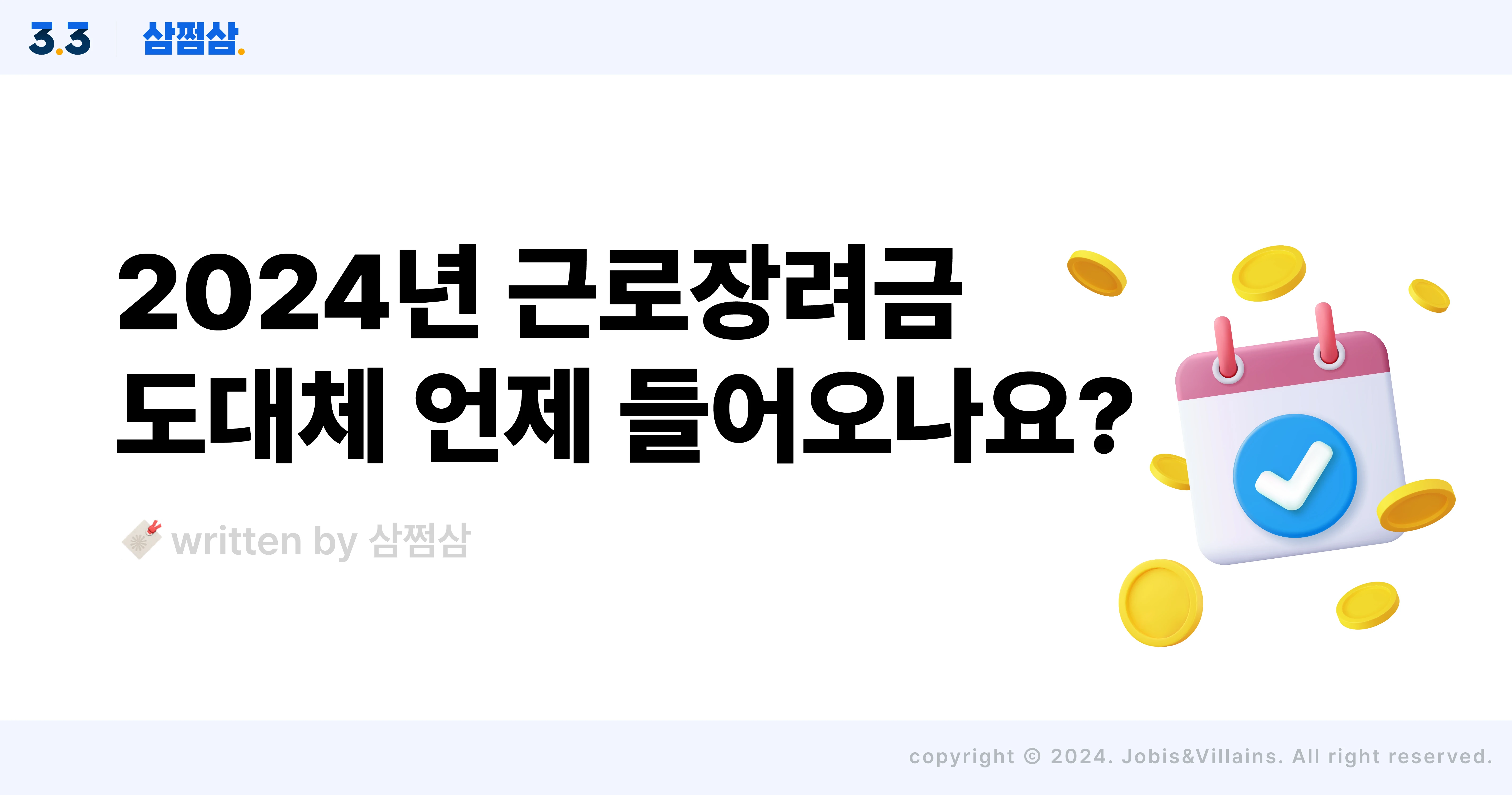 2024 근로장려금 지급일은 도대체 언제?(+기한 후 신청) 2024 근로장려금 지급일 지난 5월은 근로장려금 정기신청 기간이었어요. 신청한 분들은 근로장려금 지급일이 기다려지실 텐데요. 2024 근로장려금 지급일이 도대체 언제인지, 삼쩜삼이 알아봤어요. 1. 2024 근로장려금 지급일 우선 현기증 날 정도로 궁금한 근로장려금 지급일부터 알아볼게요. 보통 근로장려금은 신청 후 3개월의 심사를 거쳐 확정되고 지급이 되는데요. 즉, 5월 정기신청 기간에 신청했다면 9월 중으로 지급되죠. 하지만 작년, 재작년 추이를 봐선 8월 말에 입금될 가능성이 높다고들 해요. 어차피 받을 돈이지만 '하루라도 빨리 입금됐으면' 하는 게 사람 마음이잖아요? 신청일별 표준 지급일 기준은 아래 표를 확인해 주세요. <근로장려금 신청&지급일> 구분 산정 대상 신청시기 지급일 반기신청 '23년도 상반기 '23.9.1~9.15 '23.12.30 이내 '23년도 하반기 '24.3.1~3.15 '24.6.30 이내 정기신청 '23년 연간 소득 '24.5.1~5.31 '24.9월 이내 기한 후 신청 '23년 연간 소득 '24.6.1~11.30 신청일로부터 4개월 이내 Q. 근로장려금 기한 후 신청하면 언제 받을 수 있나요? 여기서 눈여겨봐야 하는 건 기한 후 신청이에요. 만약 정기신청 기간을 놓친 분들이라면 기한 후 신청 기간을 이용할 수 있는데요. 6월1일부터 11월 30일까지 신청하면 돼요. 알아두어야 할 건 기한 후 신청을 통해 근로장려금을 신청했다면 지급일이 조금 더 늦어질 수 있다는 사실이에요. 정기신청 지급일은 3개월가량 소요되는 반면, 기한 후 신청 후 장려금 지급일은 4개월 정도 소요된답니다. 단, 전액 모두 지급해주진 않고요. 5% 차감된 금액을 받을 수 있다는 사실도 알아두세요! 2. 근로장려금 신청 조건 근로장려금은 일하는 분들의 근로를 장려하기 위해 도입된 제도로, 매년 상반기, 하반기 도는 정기신청 기간에 신청할 수 있어요. 다만, 소득이나 재산 요건에 부합해야 한답니다. 1) 재산요건(가구원 합산) 가구원 모두 소유하고 있는 재산 합계액 2.4억 원 미만 2) 소득요건(부부합산) 가구요건 소득요건 최대 지급액 단독가구 2,200만 원 미만 165만 원 홑벌이가구 3,200만 원 미만 285만 원 맞벌이가구 3,800만 원 미만 330만 원 - 단독가구: 배우자, 부양자녀(18세 미만), 70세 이상 직계존속이 없는 가구- 홑벌이 가구: 배우자의 “총급여액 등”이 3백만 원 미만인 가구 : 부양자녀(18세 미만) 또는 70세 이상 직계존속(각각의 연간 소득 금액이 100만 원 이하이고 주민등록표상 동거가족으로 생계를 같이 할 것)이 있는 가구(배우자 없어도 가능)- 맞벌이 가구: 거주자 및 배우자 각각 총 급여액 등이 3백만 원 이상인 가구 위 조건을 만족해도 신청할 수 없는 경우가 있는데요. 아래에 해당하는 분들은 근로장려금 신청을 할 수 없어요. 대한민국 국적을 보유하지 않은 경우 2023년도 다른 거주자의 부양자녀인 경우 전문직 사업 영위자 상용근로자 중 월평균 소득이 500만 원 이상인 경우(배우자 포함, '23.12.31 기준) 3. 근로장려금 신청 방법 근로장려금은 홈택스나 손택스 등 인터넷으로 신청할 수도 있고 ARS를 통한 전화 신청도 가능해요. 1) ARS 전화 신청(정기신청 시 해당) ✅ ☎️1544-9944 전화 > 주민번호 누르고 신청 선택 > 안내문 내 개별인증번호 8자리 입력(국세청에 본인 휴대폰 번호 등록 시 개별인증번호 입력 생략) 2) 홈택스, 손택스 신청 ✅ 신청 안내문 받은 경우: 국세청 홈택스 또는 모바일 손택스 접속 > 장려금・연말정산・전자기부금에서 '근로・자녀 장려금' 선택 > 로그인(주민번호, 개별인증번호) > 장려금 신청(연락처, 환급계좌 확인) ✅ 신청 안내문 받지 않은 경우: 국세청 홈택스 또는 모바일 손택스 접속 > 장려금・연말정산・전자기부금에서 '근로・자녀 장려금' 선택 > 본인인증(공동・금융인증서, 간편인증)시 세대원 명세, 소득자료 등 제공> 장려금 신청(소득 및 재산, 연락처, 환급계좌 확인) 3) 인터넷 신청 ✅ 서면 안내문: 안내문 내 QR코드 스캔 후 신청✅ 모바일 안내문: 모바일 안내문에서 바로 신청 가능 4) 대리 신청 ✅ 신청 대상자 동의 후 장려금 상담 센터(신청 기간 동안만 운영, ☎️1566-3636) 상담사 또는 세무서 직원이 대리 신청 ➕자동 신청 제도도 있어요! 매번 근로장려금을 신청하기 힘든 60세 이상 고령자 또는 중증 장애인분들은 동의 후 향후 2년간 근로장려금 자동 신청돼요.(요건 충족 시) 다가오는 2024 근로장려금 지급일, 생각만 해도 기분이 좋죠? 혹시 근로장려금 진행 상황이 궁금하신 분들이 계시다면 홈택스에서 확인해 볼 수도 있는데요. [홈택스 > 장려금∙연말정산∙전자기부금 > 근로장려금 정기/반기 신청 > '심사진행상황 조회'에서 근로장려금 금액 조회 후 확인] 순서를 따라 클릭하면 기다림이 지루하지만은 않을 거예요. 돈 쓸일 많은 여름휴가, 그리고 추석 연휴 기간 근로장려금으로 어깨 부담 조금은 덜어보시기 바랄게요. - 해당 콘텐츠는 2024. 08. 14 기준으로 작성되었습니다.- 해당 콘텐츠의 내용은 일반적인 정보를 참고 목적으로만 제공하고 있으며, 개개인의 상황에 따라 달리 적용될 수 있습니다.따라서 콘텐츠를 통해 취득한 일반적인 정보로 인한 직간접적 손해에 대