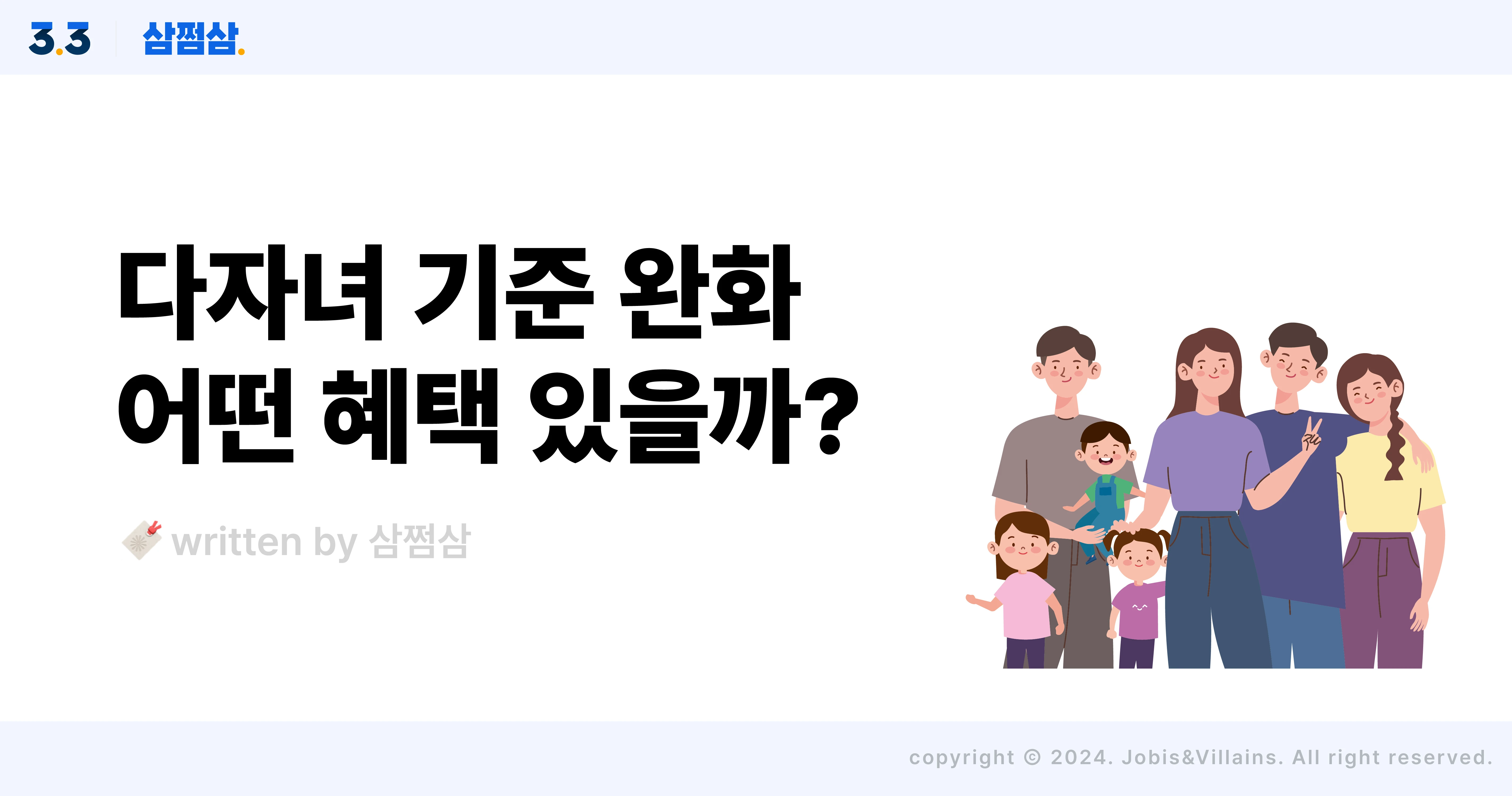 2자녀 자동차 취득세 감면 가능! 또 다른 다자녀 혜택은? 자동차 취득세 감면 외 다자녀 혜택 2010년부터 정부는 다자녀 양육자가 양육을 목적으로 취득한 자동차에 대해 취득세를 면제해 주고 있어요. 그런데 이제 2자녀 자동차 취득세 감면도 가능하게 됐어요. 왜냐! 다자녀 가구 기준이 완화됐거든요. 원래 다자녀 가구는 3명 이상의 자녀를 둔 가구를 의미했는데요. 저출산이 심화되면서 이것도 옛말이 됐죠. 이젠 다자녀 기준이 2명으로 완화되면서 2자녀를 둔 가구도 다자녀 혜택을 볼 수 있게 됐답니다. 오늘은 다자녀 취득세 감면 기준 변화 소식과 함께 다자녀 가구가 받을 수 있는 혜택들도 함께 살펴볼게요. 2자녀 자동차 취득세 감면 원래는 18세 미만 자녀가 셋 이상이면 차 구입 시 취득세 면제/감면받을 수 있었는데요. 다자녀 기준이 2자녀로 완화되면서, 2자녀 가구도 2025년 12월 31일까지 양육 목적으로 자동차를 취득해 등록하면, 아래 감면 혜택을 볼 수 있어요. <2자녀 자동차 취득세 감면 세부사항> 자동차 종류 대상 차량 감면세액 승용차량 가. 승차정원 7명 이상 ~ 10명 이하 승용 자동차 취득세 면제(단, 취득세 200만 원 초과 시 100분의 85 감면율 적용) 나. 가목 외의 승용 자동차 취득세 140만 원 이하인 경우 면제140만 원 초과하는 경우 140만 원 경감 승합자동차 승차정원 15명 이하 취득세 면제(단, 취득세 200만 원 초과 시 100분의 85 감면율 적용) 화물자동차 최대 적재량 1톤 이하 이륜자동차 배기량 250cc 이하 (※ 단, 다자녀 양육자 중 1명 이상이 종전에 감면받은 차량을 소유하고 있거나 배우자 및 자녀 외의 사람과 공동 등록하면 감면 혜택 적용 불가) ➕또 다른 다자녀 가구 혜택 1) 아파트 분양 시 다자녀 특별공급(특공) 청약을 넣을 수 있어요 아파트 분양은 일반/우선/특별 공급으로 나뉘는데요. 다자녀 가구는 ‘다자녀 특별공급(특공)’으로 청약을 할 수 있고, 물량은 전체 아파트 분양 물량의 10% 정도예요. 원래 3자녀 이상 가구만 다자녀 특공에 넣을 수 있었는데, 이제는 자녀가 둘만 돼도 다자녀 특공에 뛰어들 수 있게 됐어요. 단, 자녀 수에 따라서 가점에는 차이가 있어요. <다자녀 청약 가점> 구분 현행 개선 대상가구 3자녀 이상 2자녀 이상 자녀 수 배점(40점) 3명: 30점 2명: 25점 4명: 35점 3명: 35점 5명 이상: 40점 4명 이상: 40점 ※ 무주택 구성원이라면 일반 공급과 청약 경쟁 없이 분양 및 임대주택을 특별, 분양 전환 공공 주택 등 1차례 우선 공급 가능 2) 문화시설, 공공시설 이용료도 할인받아요 문화시설 할인 기준 역시 2자녀로 통일돼요. 원래 증빙은 다자녀 우대카드로만 가능했지만, 가족관계증명서도 증빙 서류로 허용돼요. #1 국립수목원 관람료 면제 지자체에서 발급한 다자녀 카드를 소지한 가구 또는 2자녀 이상 다자녀 가구 중 막내가 만 13세 이하인 가구는 국립수목원 무료로 관람할 수 있어요. #2 국립자연휴양림 이용 대금 감면 숲나들e 홈페이지를 통한 예약 시 인증 절차를 거쳐 감면받거나, 현장에서 가족관계증명서를 확인 후 감면받을 수 있어요. 구분 이용요금 입장료 면제 객실료 1가정 1객실에 한해서 요금 할인(비수기 주중: 30%, 성수기 및 주말: 10%) 야영시설 이용료 이용요금 할인(비수기 주중: 20%, 성수기 및 주말: 10%) #3 철도운임 할인 코레일멤버십 회원 중 만 25세 미만 자녀 2명 이상을 둔 회원은 운임료를 할인받아요. 코레일 홈페이지에서 가족 구성원을 등록한 후, 가까운 역 창구에서 가족관계증명서 등을 제시하면 이용 가능합니다. 구분 이용요금 할인 범위 - 어른 운임의 30% 할인[KTX 열차별 승차율에 따라 지정된 좌석을 등록된 가족 중 최소 3명 이상(어른 1명 포함)이 이용하는 경우]- 지연할인증 이외에 다른 할인과 중복 적용 없음- 최저운임 이하로는 할인 불가- 특실 요금은 할인하지 않음 구매 범위 회원당 1일 2회, 1개월 10회까지 구매 가능 이외에도 초/중/고 교육비 지원, 전기/도시가스 공공요금 지원 등에서도 혜택을 볼 수 있는데요. 정부24 > 행복출산원스톱 서비스 페이지에서 한 번에 신청하실 수 있으니 다자녀 가구에서는 해당하는 지원 혜택 다 받아보시기 바라요. 아이 1명을 키우기 위해 어마어마한 비용과 관심과 시간이 드는 요즘 시대, 아이를 키우고 있다는 것만으로도 존경받아 마땅합니다. 특히, 아이를 여럿 키우는 다자녀 가구에서는 매달 지출되는 생활비도 만만치 않을 텐데요. 정부에서 지원해 주는 다자녀 혜택 잘 활용해서 아이 키우는데 많은 도움 받으시기 바랍니다. - 해당 콘텐츠는 2024. 08. 23 기준으로 작성되었습니다.- 해당 콘텐츠의 내용은 일반적인 정보를 참고 목적으로만 제공하고 있으며, 개개인의 상황에 따라 달리 적용될 수 있습니다.따라서 콘텐츠를 통해 취득한 일반적인 정보로 인한 직간접적 손해에 대해서 당사는 법적 책임을 지지 않음을 알려드립니다.ⓒ자비스앤빌런즈, 무단 전제 및 배포 금지 다자녀_자동차_취득세_감면_혜택_철도운임_아파트_청약1.webp300 킬로바이트 다자녀_자동차_취득세_감면_혜택_철도운임_아파트_청약2.webp200 킬로바이트 다자녀_자동차_취득세_감면_혜택_철도운임_아파트_청약3.webp600 킬로바이트 다자녀_